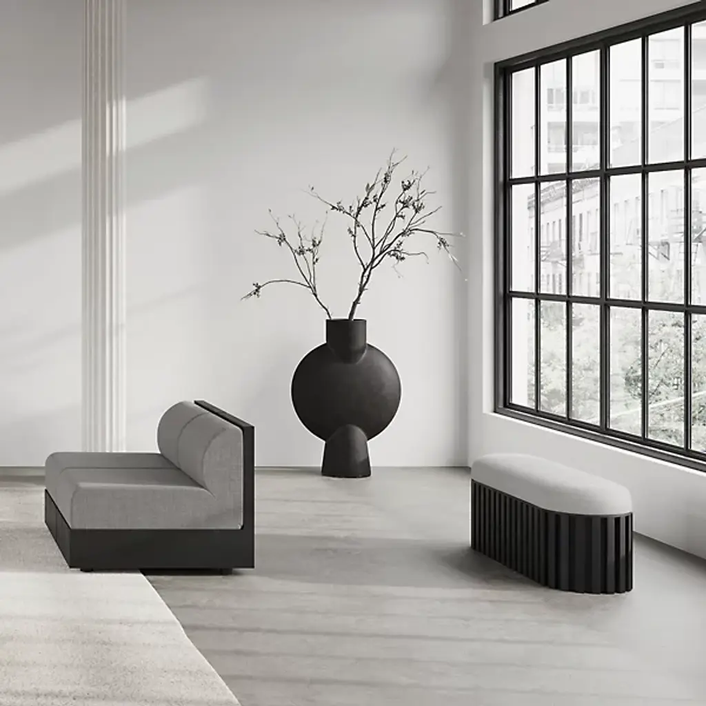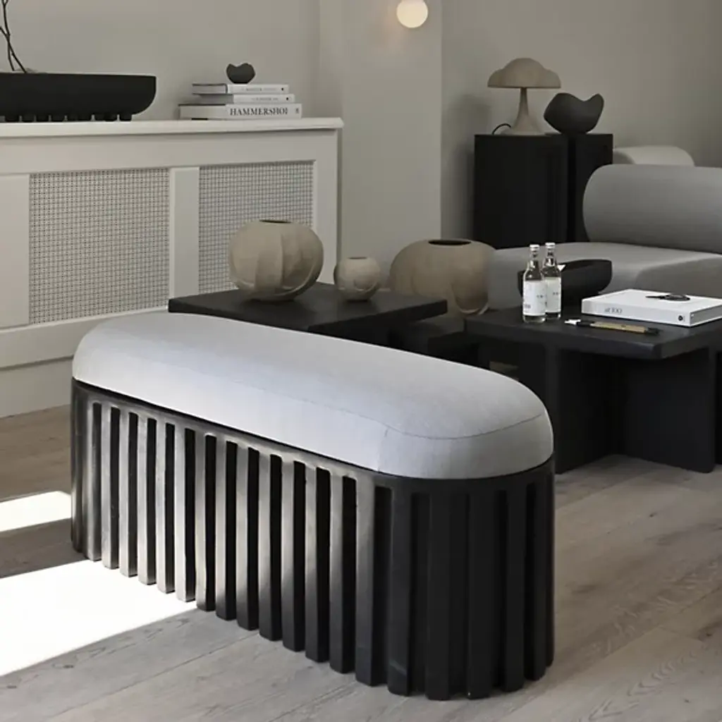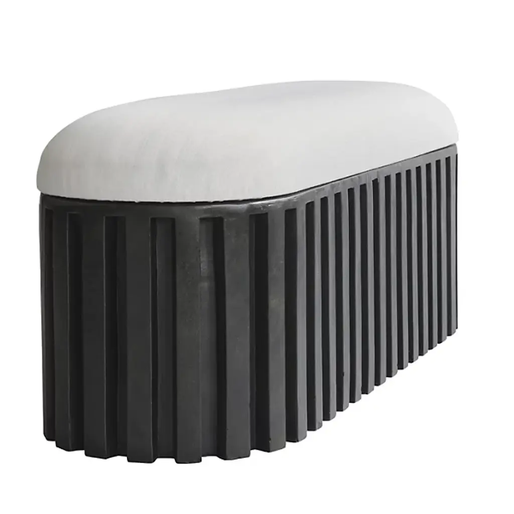The Tribu Bench from 101 Copenhagen is a sophisticated contemporary design that blends architectural sophistication with tribal inspiration. Designed by Kristian Sofus Hansen & Tommy Hyldahl, its robust fiber concrete base anchors a plush upholstered cushion, balancing sharp, geometric lines with soft, comfortable seating. The unique concrete accents and hand-painted surface add character to its artistic flair. Great for accenting a lounge area or living space, it features mounting brackets for easy assembly and is acceptable for indoor and outdoor settings.