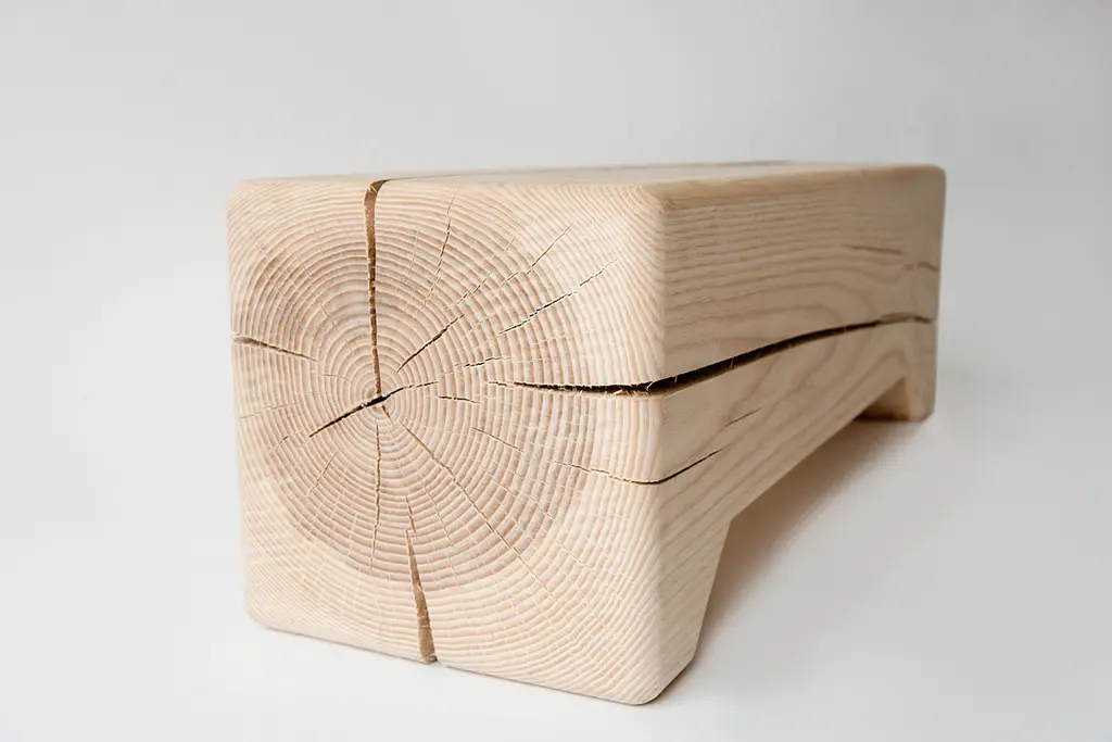 Cut from a solid block of freshly cut domestic ash or maple felled in the forests of Maine, the Trunk explores the playful relationship between the variations inherent to natural materials and the precision of contemporary form. Over time, the surface evolves giving each piece a unique look. Ring and heartwood details have been actively preserved and featured on the seat. No finish has been applied to best allow the piece to develop a natural patina as it ages.