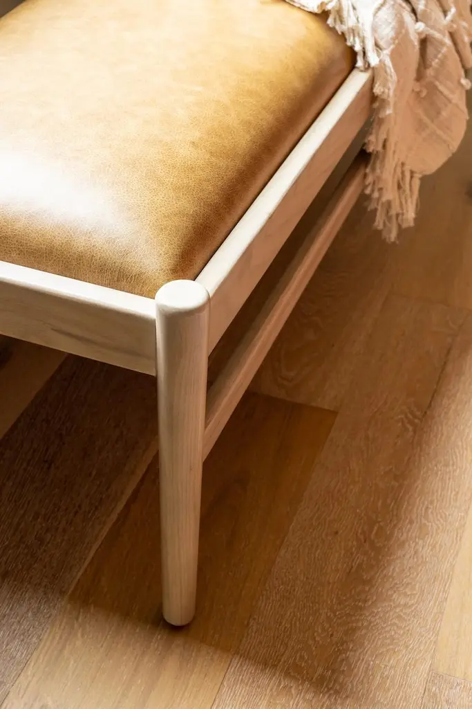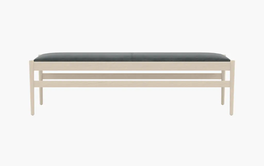 An update to classic mid-century modern style, the Turner Bench is both sleek and comfortable thanks to tapered, turned legs and an upholstered seat. Designer tip: Turner's upholstered seat is an easy way to add elevated comfort to your dining space.