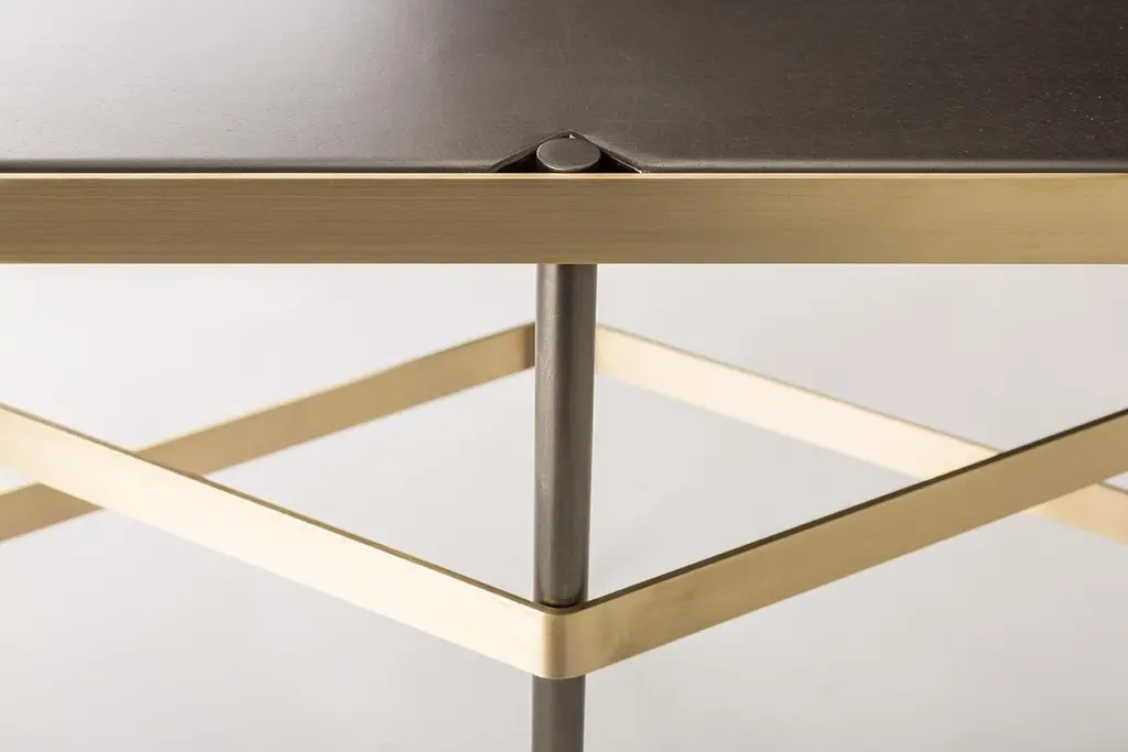 Twine is a bench characterized by two brass ribbons that move under the seat tying together the six legs and subdividing the space in different geometries depending on the point of view from which from which it is observed. A further ribbon ties together the legs to the seat, enriching it with precious details. It is designed to offer a point of support temporary support, thus enhancing even areas of living and transit. Numbered,Numbered