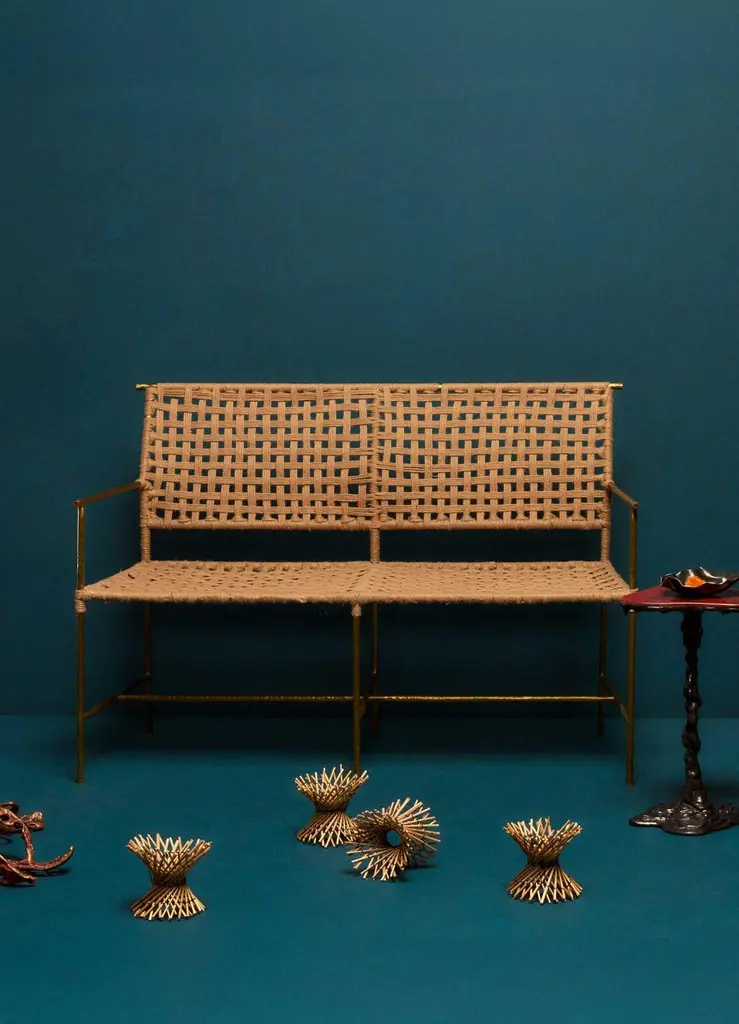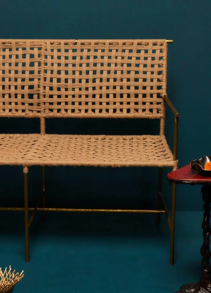 Twist & Knot Bench In Rope With Brass Legs, Viya By Vikram Goyal