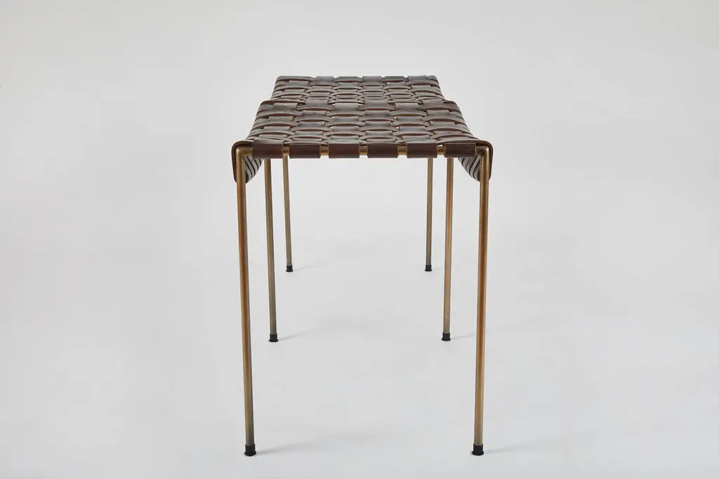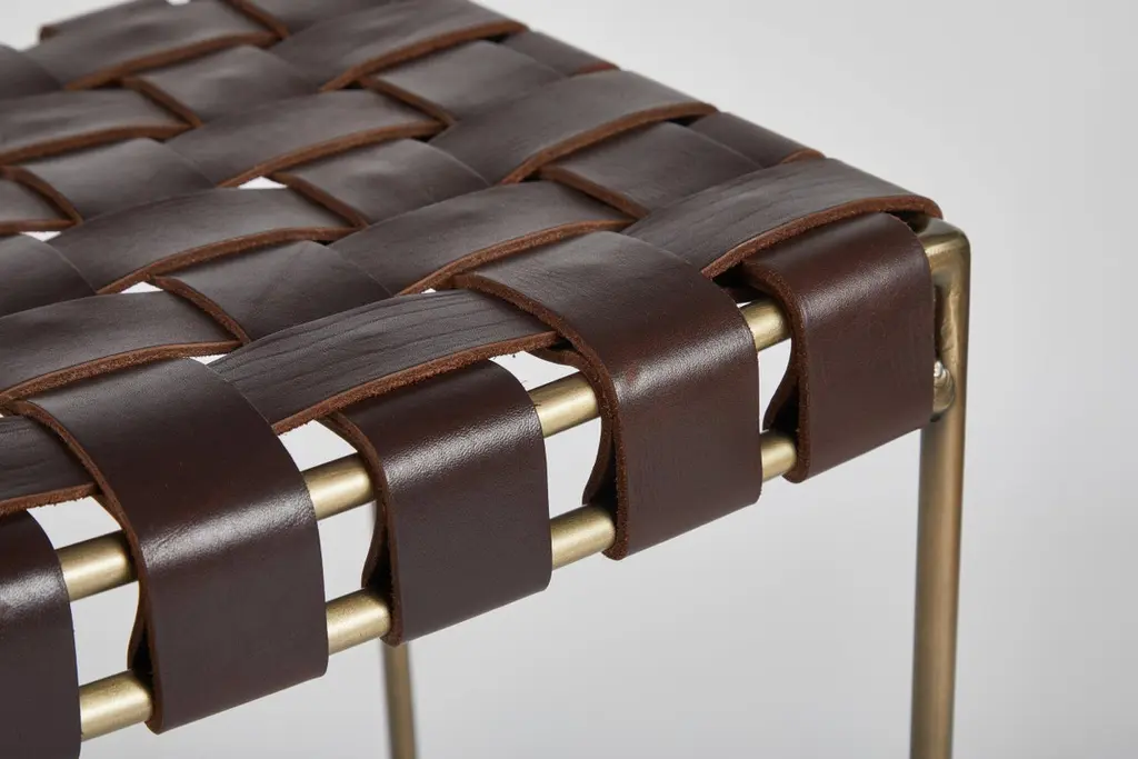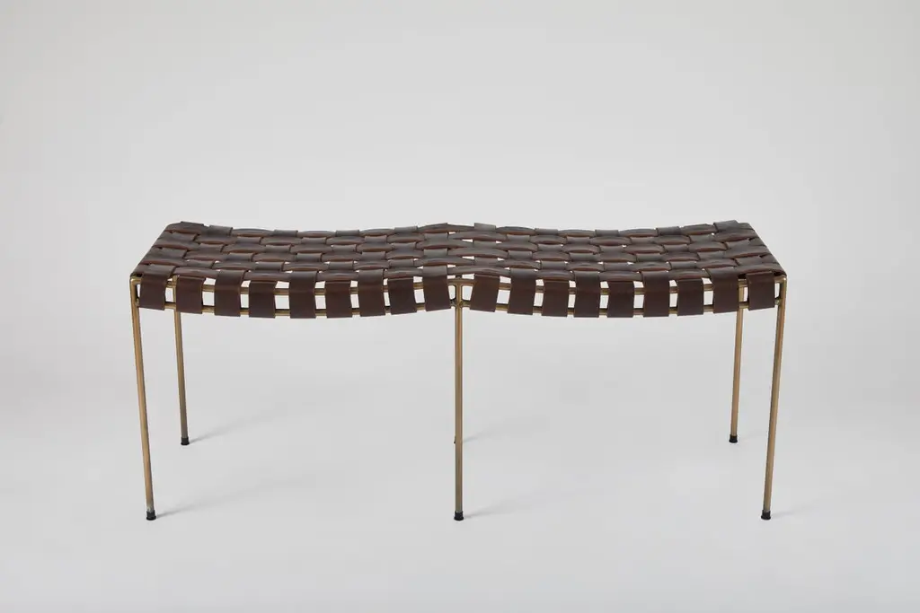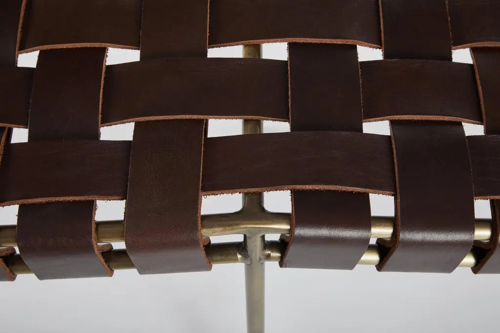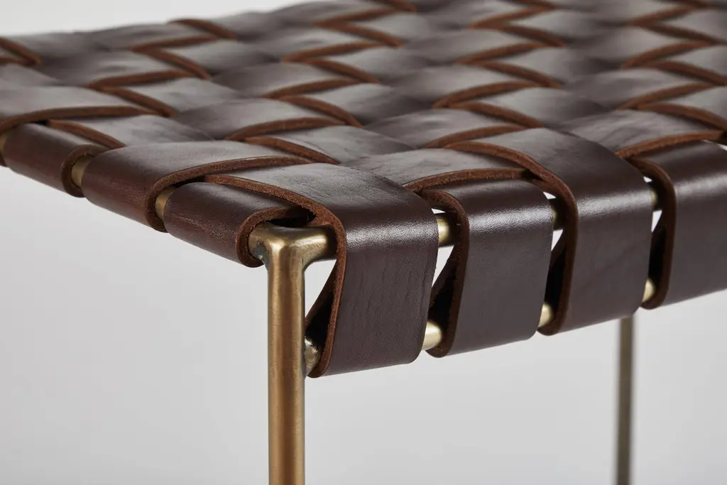 Two Seat Double Rail Handwoven Chocolate Leather Bench
