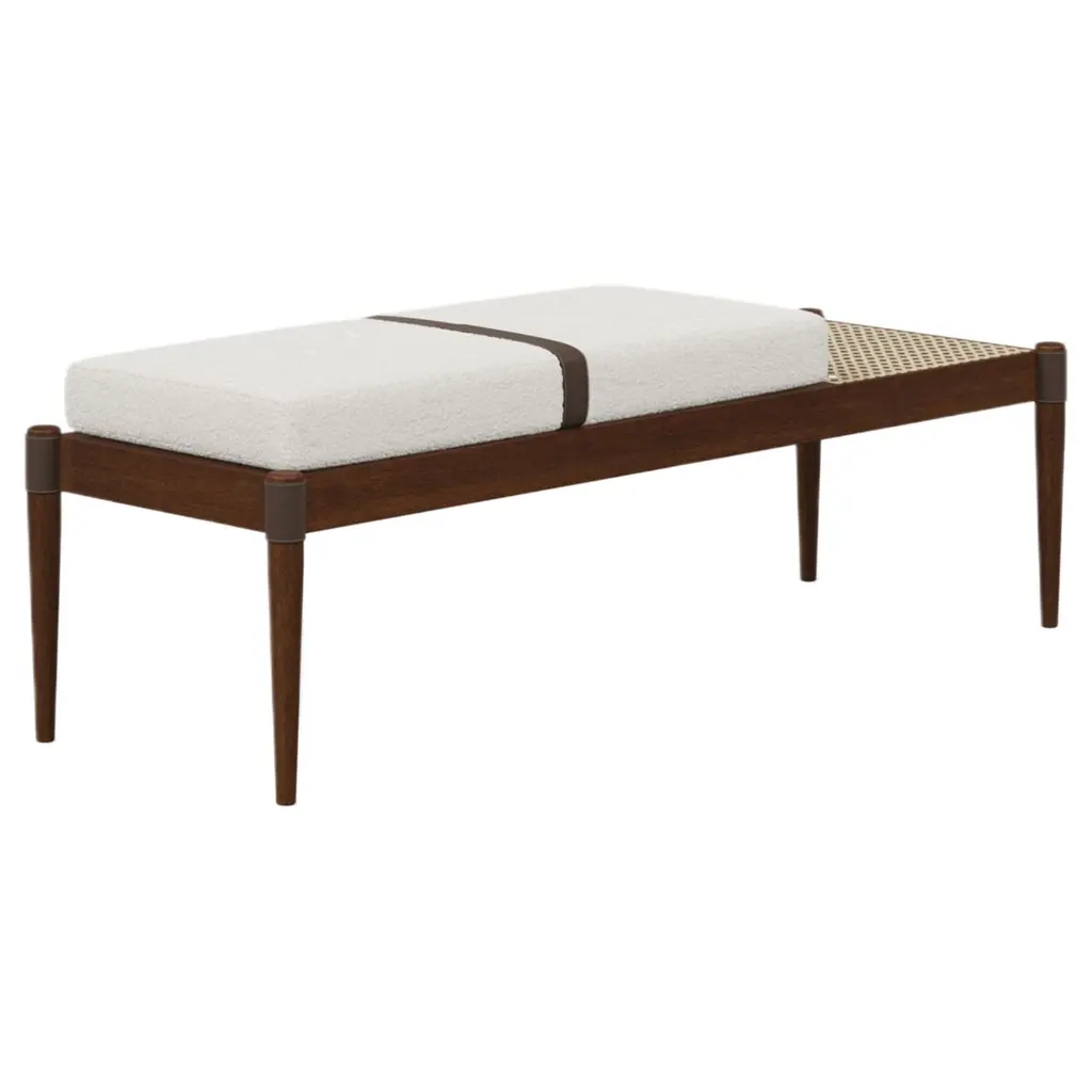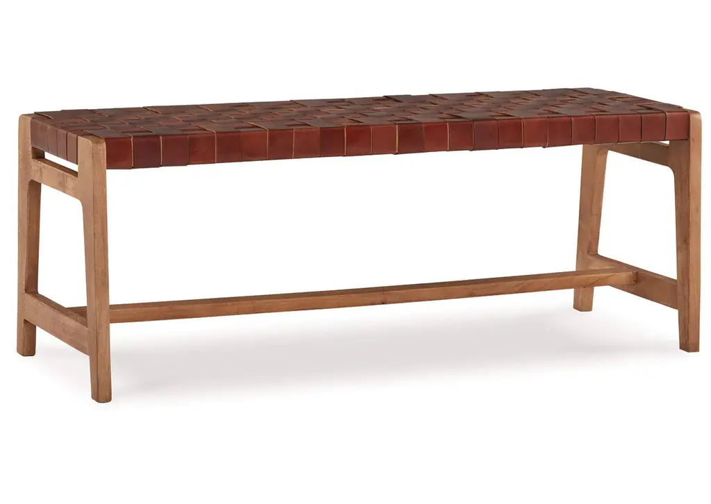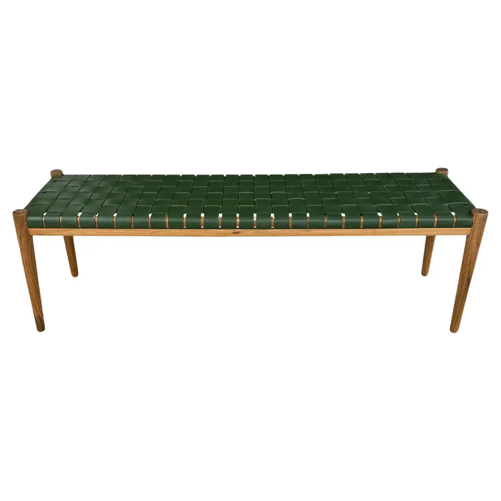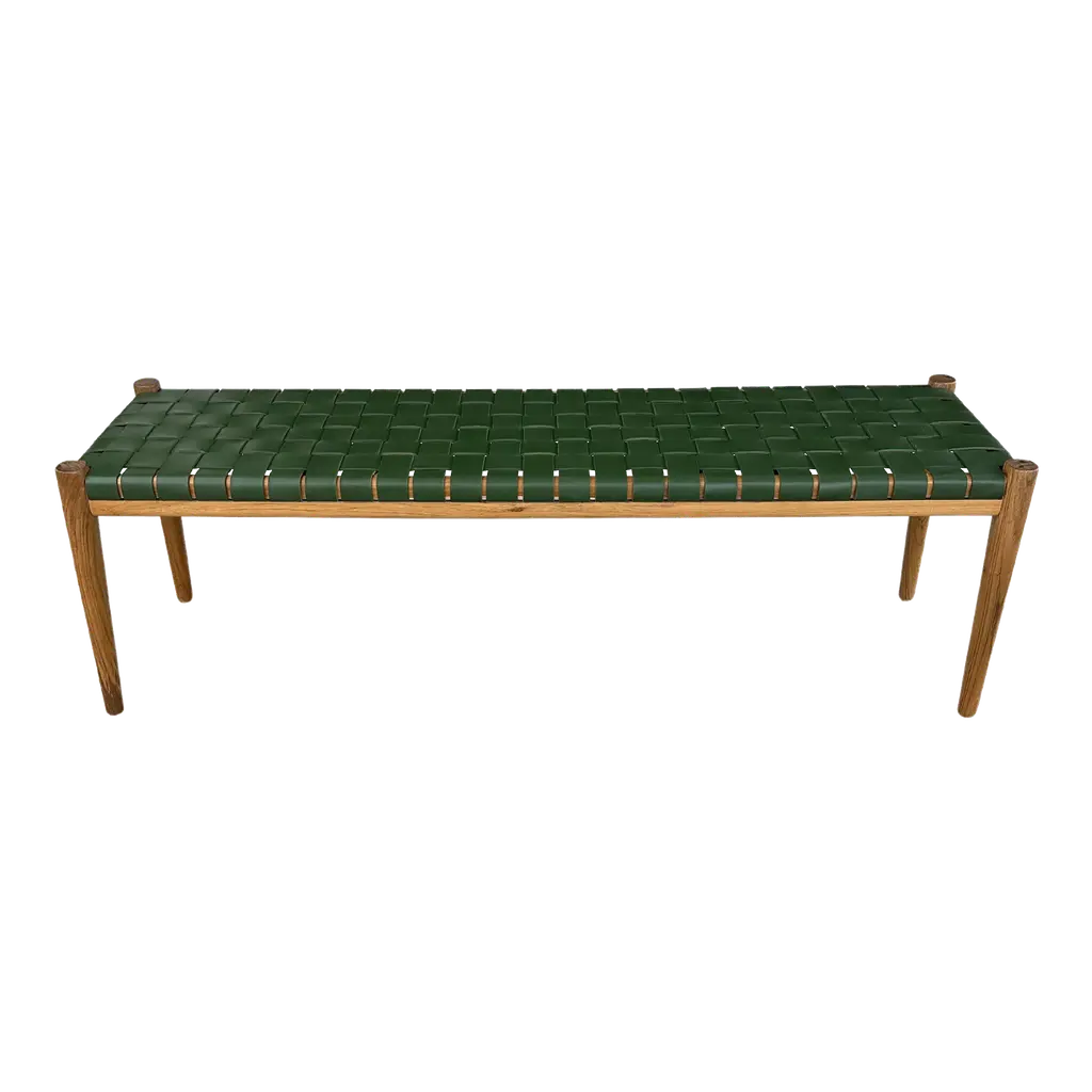 Two Seat Double Rail Handwoven Chocolate Leather Bench