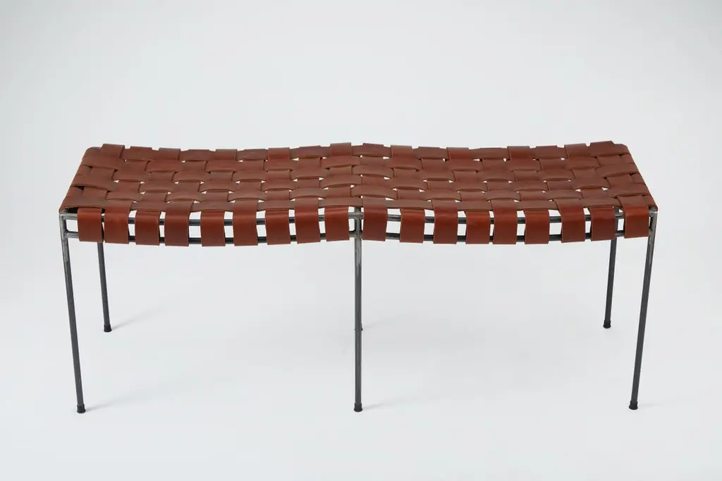 The bench is hand-woven by a master weaver with decades of experience. We use 70% recycled steel for the frame.Designed by a former art dealer who represented contemporary artists for over 30 years including some of the giants of minimalist art. The inspiration the designer took from working with minimalist artists over decades is realized in the principles of simplicity, honesty, utility at the heart of MIlwood Design. Hand made locally in Venice, California.