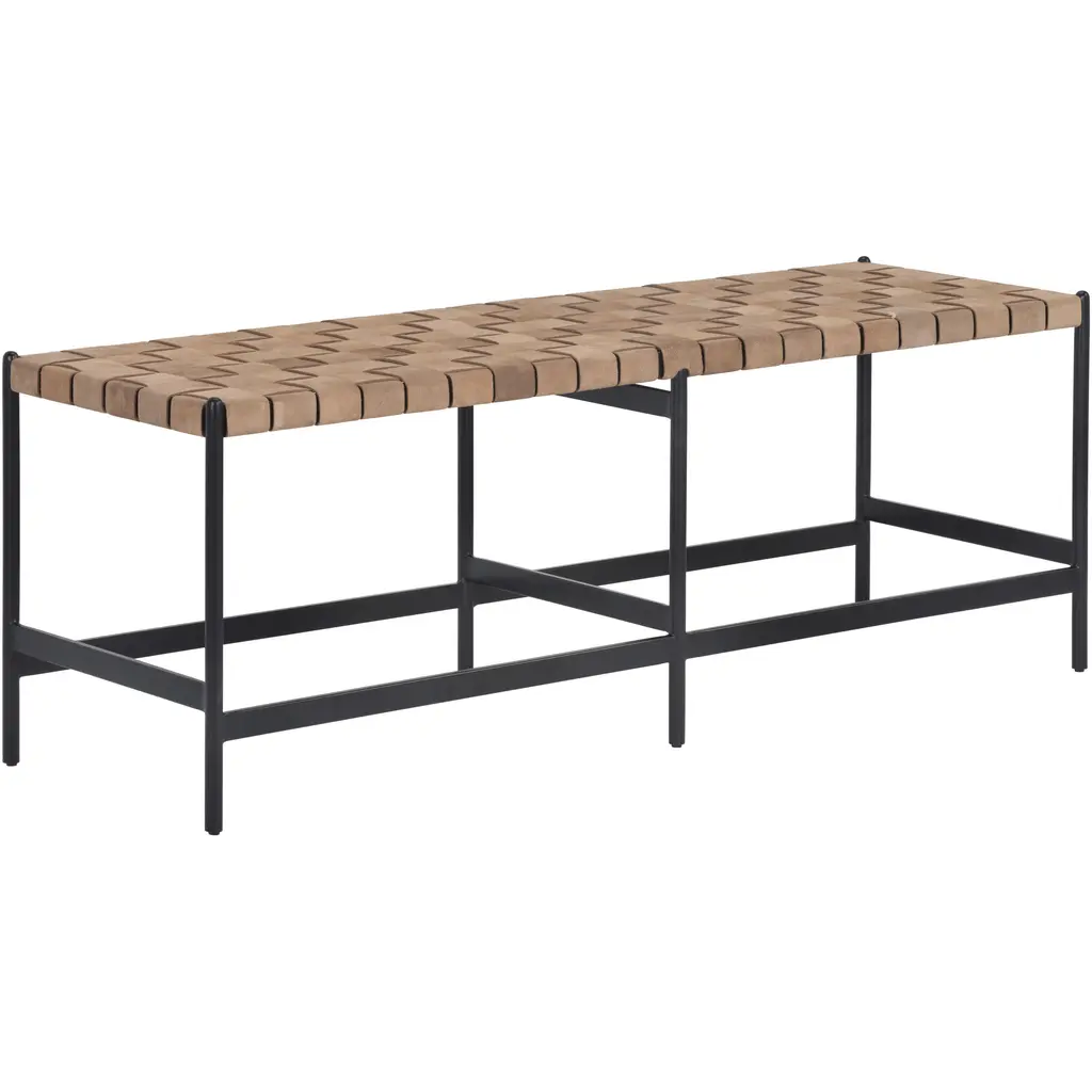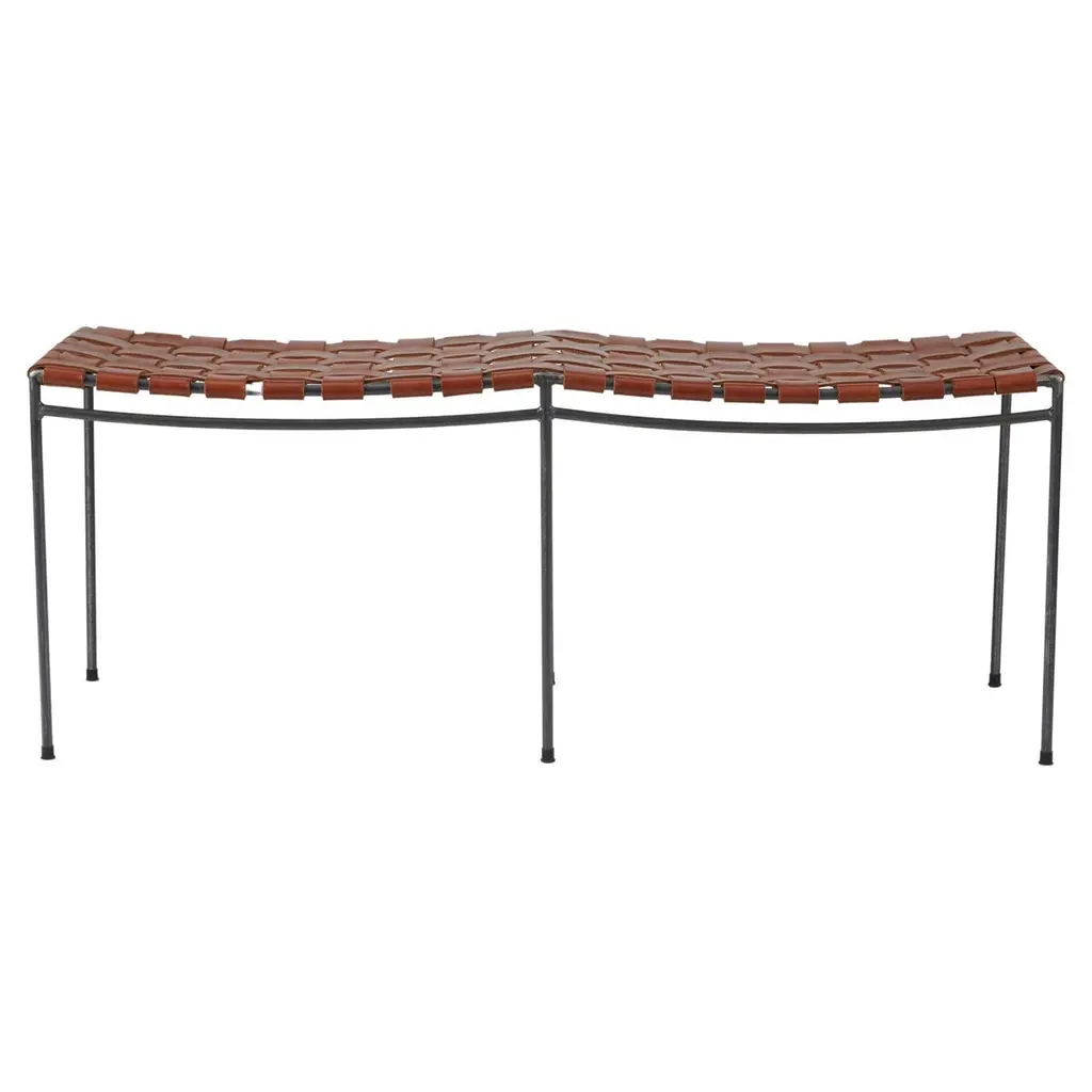 Two Seat Double Rail Handwoven Cognac Leather Bench