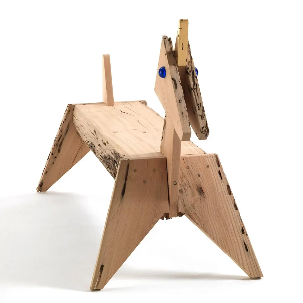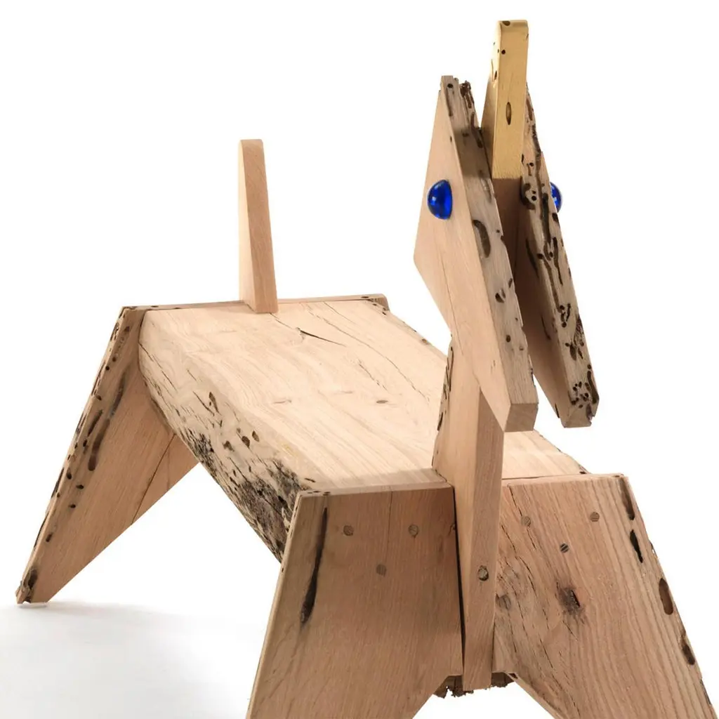 Bench unicorn all in solid oakwood from Venice.Carved oakwood treated with natural pine extracts.