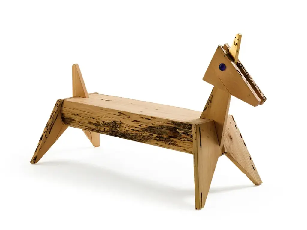 Unicorno is a bench in solid Briccola wood whose design reminds of the fantasy world. Seat supported by 4 legs.STANDARD VERSION: BLUE EYES MADE OF MURANO GLASS AND GOLDEN COLOUR HORNAVAILABLE FINISHES:A6: briccola