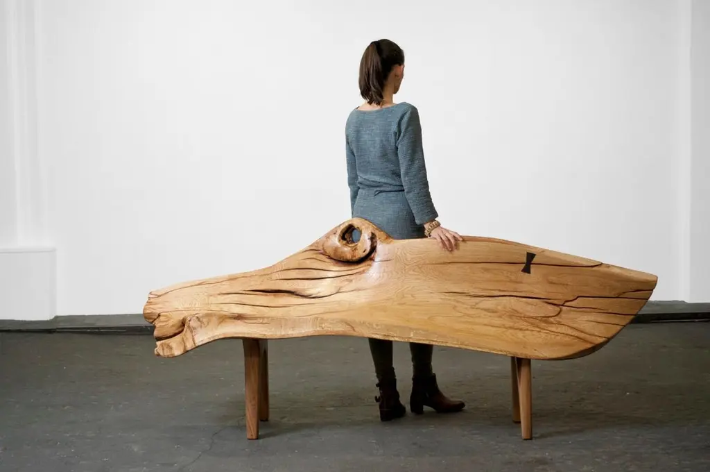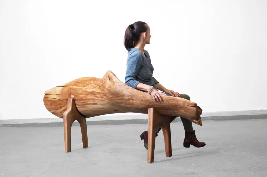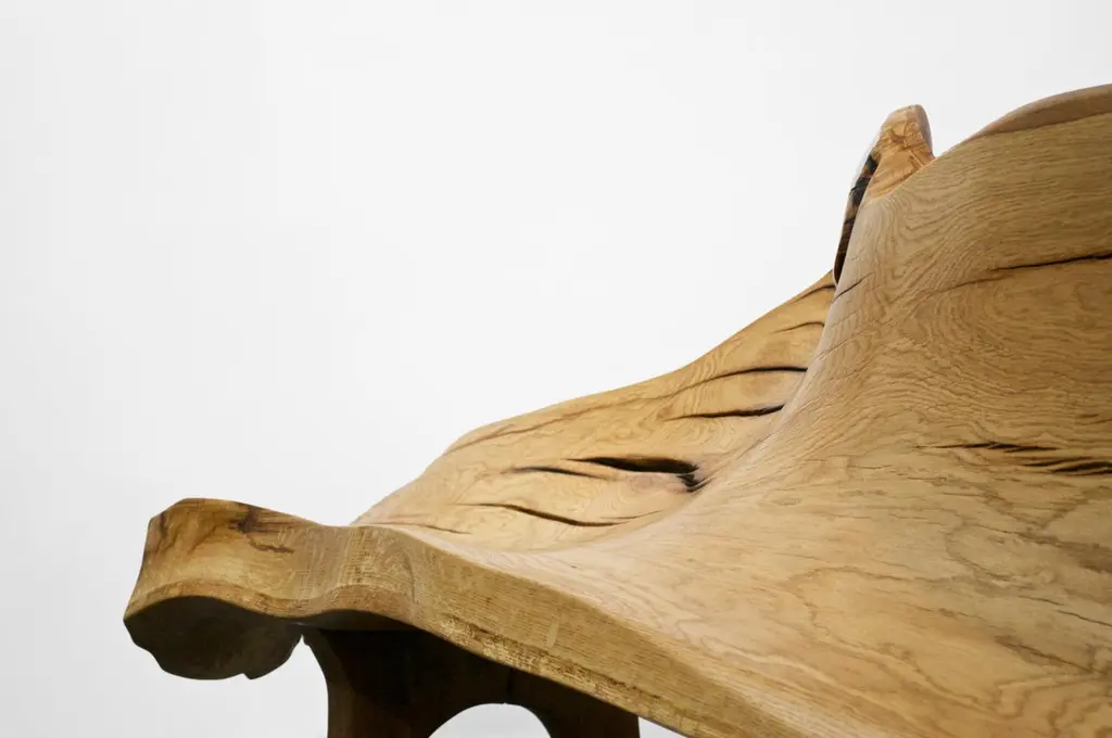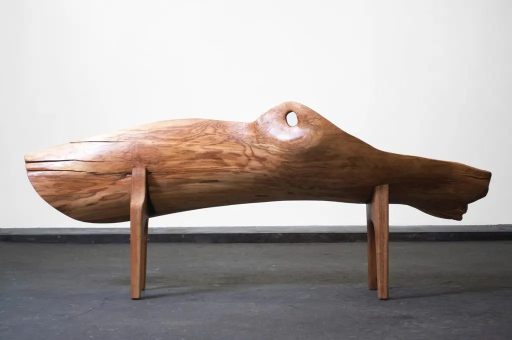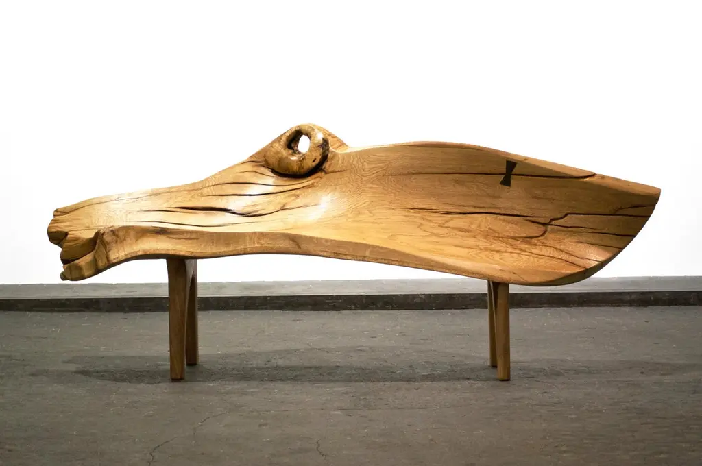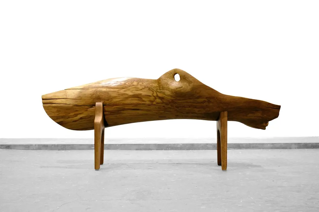 Unique signed bench by Jörg PietschmannMaterials: WoodMeasures: H 89, Seatheight 50 x W 224 x D 55 cmBench composed of precious and expressive wood.Polished oil finish.In Pietschmann’s sculptures, trees that for centuries were part of a landscape and founded in primordial forces tell stories inscribed in the memory of their fibers.The forms Jörg Pietschmann pares from ancient trees are extensive and astonish with their physical presence, a combination of elegance and primeval nature. Pietschmann’s sculptures are monuments to the trees from which they derive.Being endowed with the ruggedness of primeval matter gives them a veritable vitality: figures that appear to have grown into their sculptural form of their own accord. But Pietschmann’s tangibly present bodies have undergone a considerable degree of metamorphosis.In order to generate these unique tree specimens he examines the tree’s morphology and intrinsic inner map until the courses of its grain, of a curve, knots and cracks concur with his projections. The exploratory process is accompanied by constant modification, giving at the start of each new piece no more than an intimation of the figure that will later emerge. In their completion, Pietschmann’s sculptures once more become universal form.Jörg Pietschmann's workshop is situated on the countryside close to Hamburg. He works with indigenous timber as oak, lime tree, beech, poplar, olive tree and maple felled by the wind or human hand, together with tropical timber found on his travels.