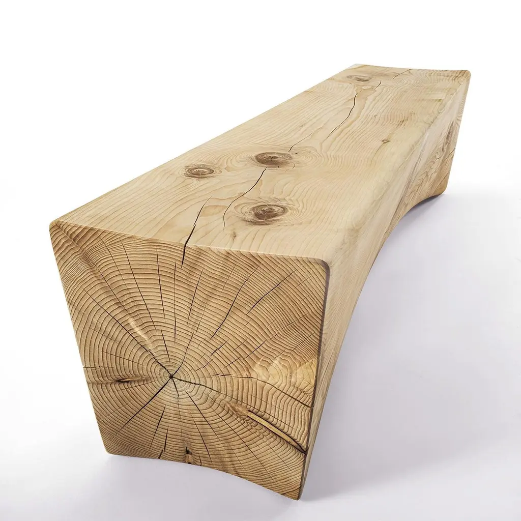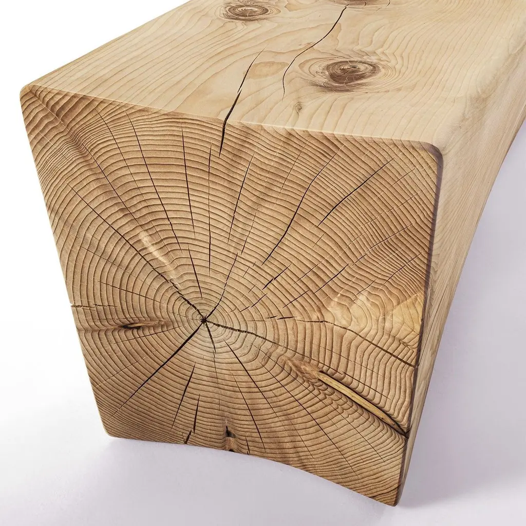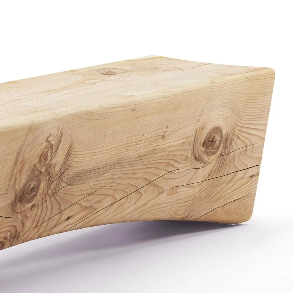 Bench Vector Cedar in solid natural aromatic cedar wood. Made in on block of cedar wood. With sinuous movement. Elegant and original piece.Solid cedar wood include movement, cracks and changes in wood conditions, this is the essential characteristic of natural solid cedar wood due to natural settlement and different environmental conditions.