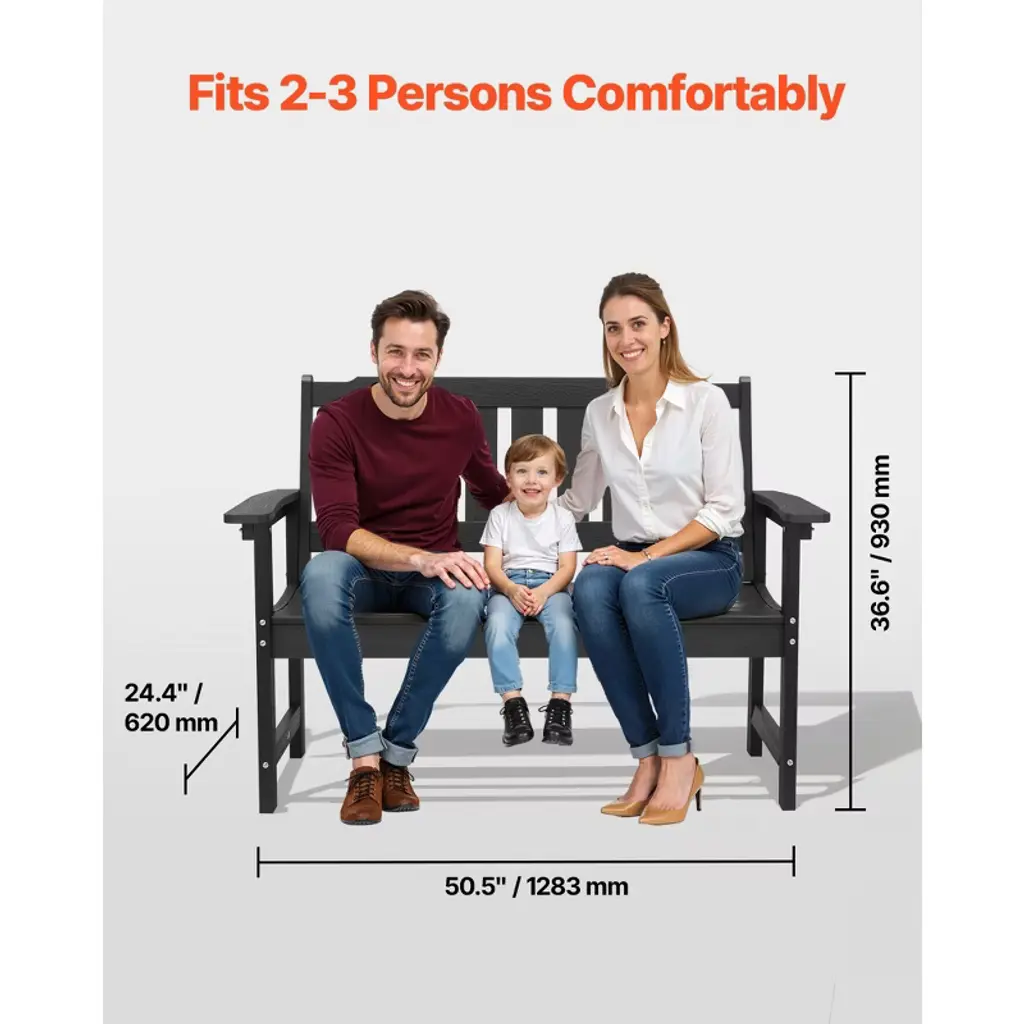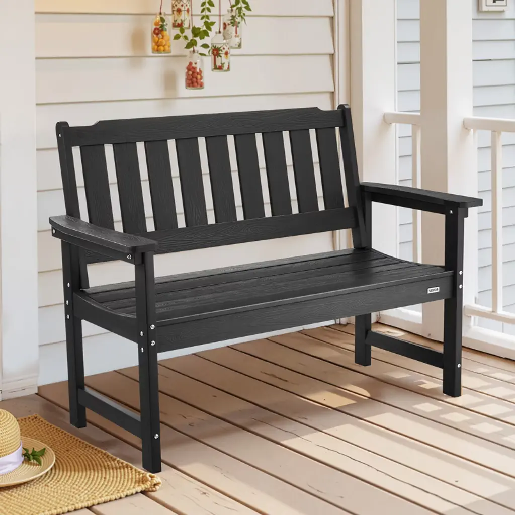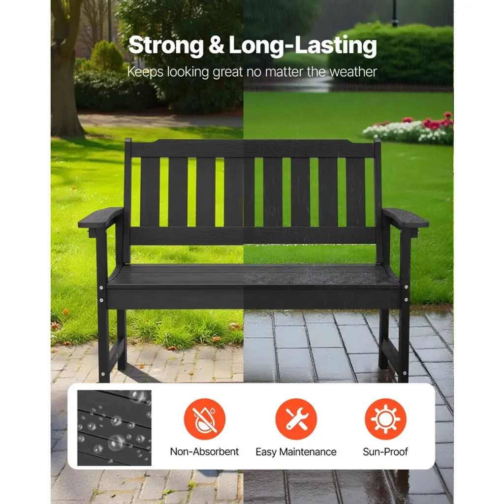 Vevor Outdoor Bench, 50.5 Inch, 800 Lbs Weight Capacity For 2-3 Persons, Weatherproof Plastic Frame With Backrest And Wide Armrests, Black