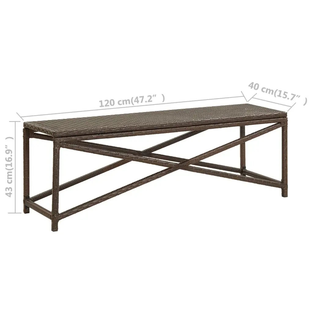 Vidaxl Bench Brown Polyethylene Rattan And Powder-Coated Steel 47.2 In
