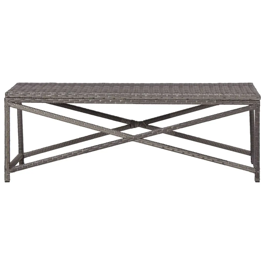 This garden bench is made for outdoor fun, letting you chill or hang out with friends in comfort and style. Its grey color and contemporary design make it a perfect match for your patio, garden, or conservatory, adding a classy vibe to your outdoor area. Durable Construction: Made from weather-resistant PE rattan, this bench can take on outdoor elements, ensuring it lasts even in tough conditions.Spacious Seating: With dimensions of 47.2 in long, it offers plenty of room for your friends or family to sit comfortably.Stylish Aesthetic: The sleek, modern design brings a contemporary feel to patios or gardens, enhancing your outdoor decor.Easy Maintenance: This bench is easy to clean—just wipe it with a damp cloth to keep it looking fresh.Compact Design: Its smart size and rectangular shape make it perfect for smaller patios or gardens while still providing ample seating.