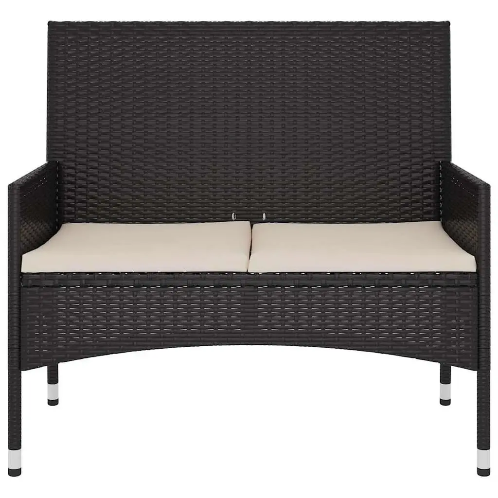 This 2-Seater Garden Bench has a modern design, making it just right for outdoor areas. It's all about combining practicality with style, perfect for patios and balconies. Durability: Made from weather-resistant PE rattan, this garden bench keeps going strong in all kinds of weather. It can handle UV exposure, which makes it perfect for outdoors.Comfort: The bench comes with cushions that are made from 100% polyester fabric. They’re specifically designed for outdoor comfort and feature zippers for easy cleaning.Stylish Design: The sleek black frame and woven look give it a modern vibe that fits right in with contemporary outdoor decor. It's not just functional but also a stylish addition to your space.Easy Maintenance: Cleaning is a breeze; just use a damp cloth and a soft brush. Using a waterproof cover when it’s not in use will help it last even longer.Size and Capacity: It measures 35.4 in in length and 33.5 in in height, perfect for 2 adults. It can support up to 242.5 lb, so you can sit comfortably without worries.