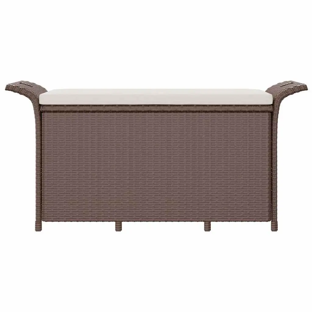 This garden bench combines looks and usefulness, designed for comfort and practicality. Its modern style fits right into any outdoor spot, making it not just a place to sit, but a chic addition that enhances your patio or garden. Durable Construction: Made with tough powder-coated steel and polyethylene rattan, giving you a solid seating option for outdoors. These materials are both UV resistant and water-resistant, ensuring they last and stand up to the elements.Spacious Storage: Comes with a generous storage space under the seat, great for keeping outdoor essentials like cushions and gardening tools neat and protected. Helps keep your area tidy while ensuring you easily grab what you need.Modern Aesthetic: The clean lines and woven look of the bench add a touch of contemporary flair to any outdoor space. Its stylish brown finish goes well with all sorts of garden designs, making it a versatile choice.Comfortable Seating: The included cushioned seat is easy to take off and clean, thanks to its zipper closure. This adds a nice touch for long sits on your patio, perfect for enjoying a book or having friends over.Versatile Use: Great for gardens, patios, balconies, or anywhere outside, it gives you a cozy spot for two and doubles as decorative storage, blending perfectly with your outdoor furniture.