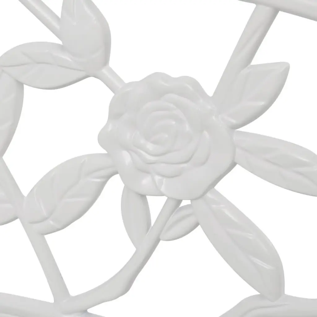This lovely garden bench is the ideal addition to any outdoor spot, designed to boost the look of your garden, patio, or yard. Made with tough cast aluminum and cast iron, it's a perfect mix of traditional charm and modern durability, making it a welcoming place to chill during summer gatherings or peaceful afternoons with a good book. Durable Build: The bench is made to tackle outdoor conditions while keeping its classy look, ensuring it lasts a long time with little upkeep. Visual Appeal: It has decorative inlays that boost its style, making it more than just furniture—it's a statement piece for any outdoor spot. Comfortable Seating: With enough space, two folks can chill comfortably; great for chats and company. Easy Cleanup: Thanks to its smooth metal surface, a quick wipe down does the trick to keep its charming white finish looking good. Fit for Any Setting: Whether in a garden, park, or alongside your patio, this bench makes every outdoor moment special, perfect for relaxing outside.