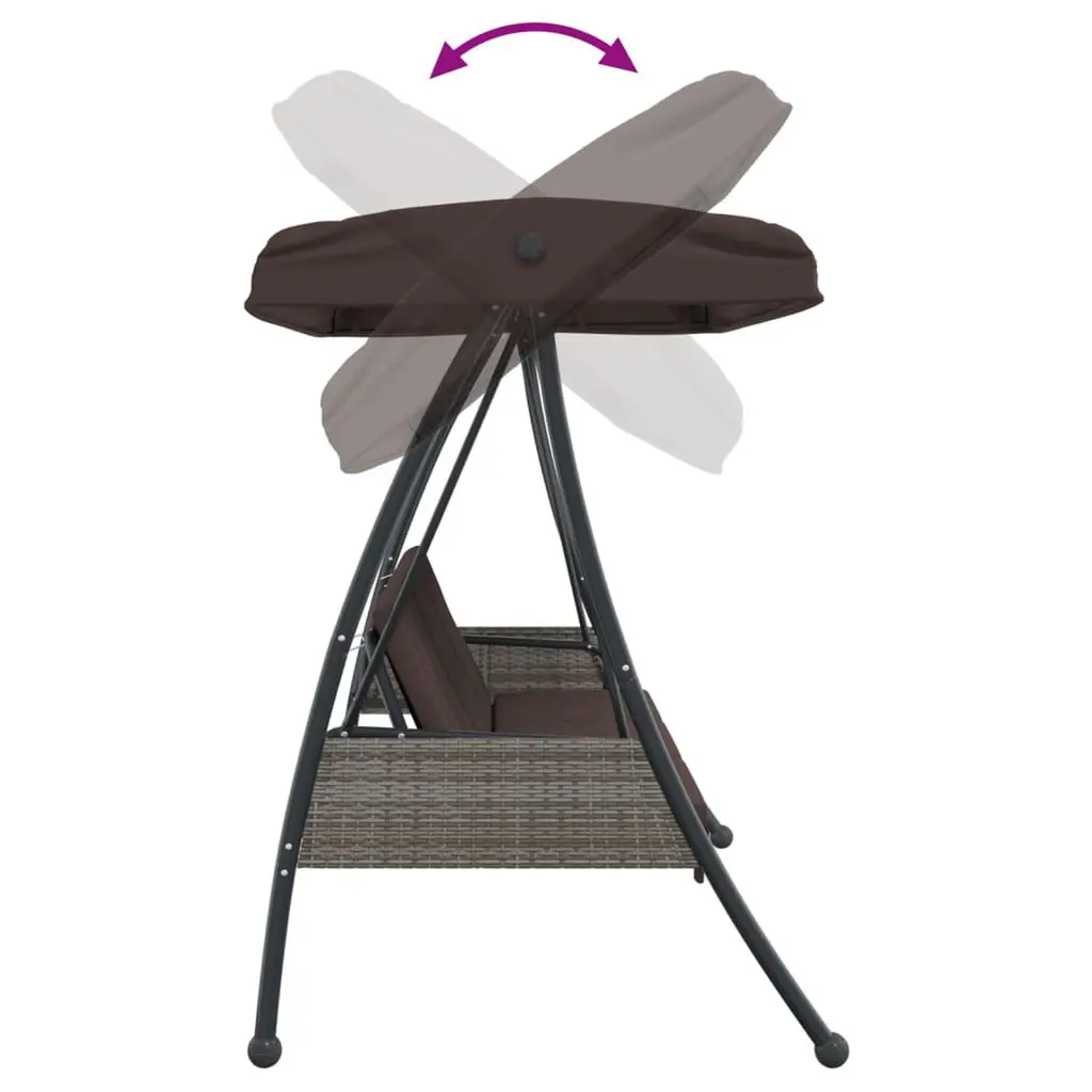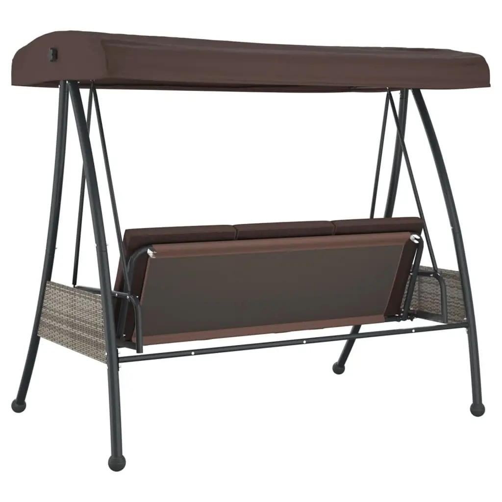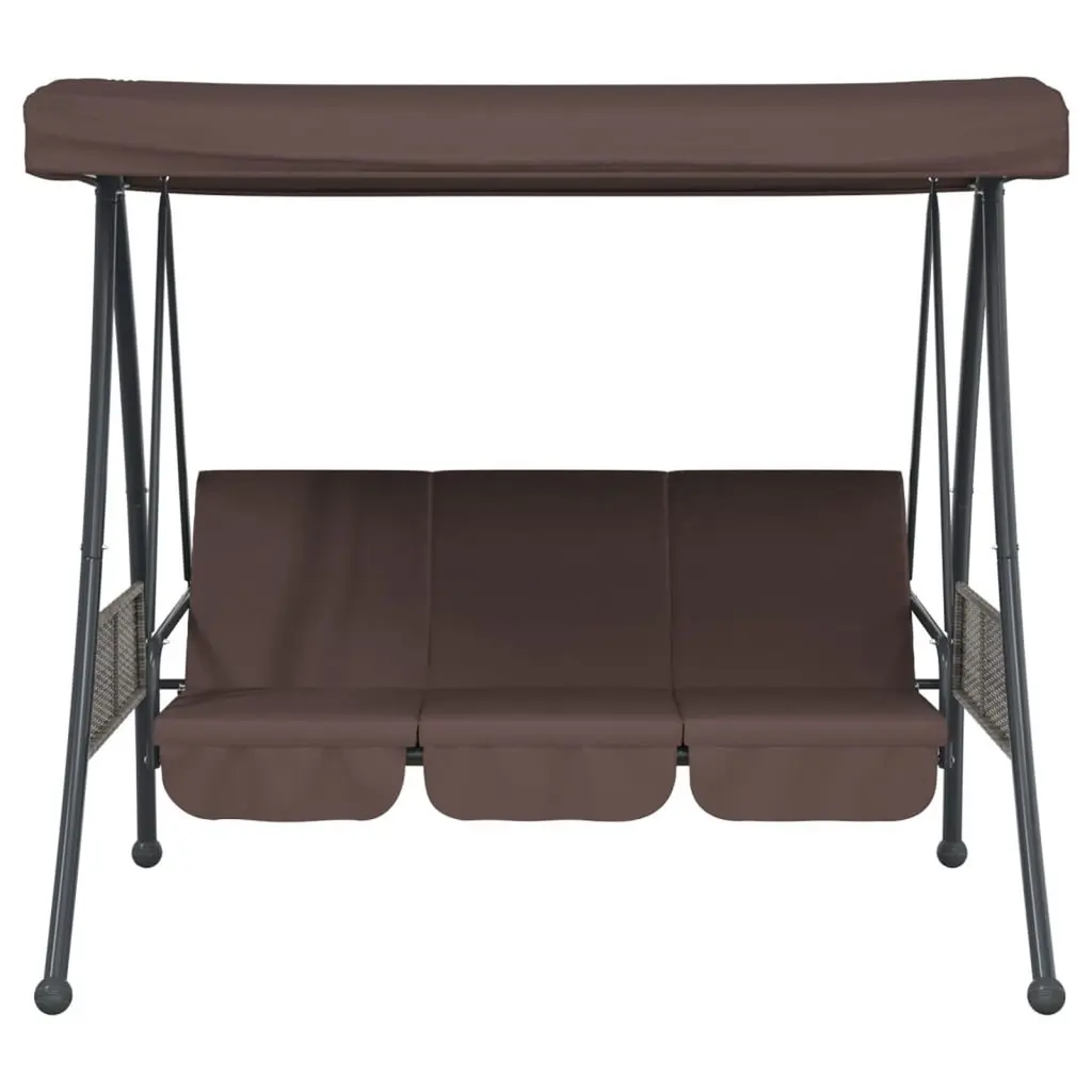 This stylish garden swing bench gives you a comfy and laid-back spot to unwind, whether in a lovely garden or a lively balcony. Its modern design and rich coffee brown color add a warm vibe that blends perfectly with nature, making it not just practical, but also a stylish touch to your outdoor area. • Adjustable Canopy: The canopy can be adjusted from 0 to 60 degrees manually, so you can choose how much sun you want or need, making it comfy and versatile for any weather.• Durable Construction: Made from tough powder-coated steel, this swing bench is built to handle the outdoors, ensuring it'll last while looking good. It’s sturdy to keep you safe while you unwind.• Convertible Functionality: This swing bench easily switches between seating and lying down, giving you the versatility for socializing or simply chilling by yourself. Perfect for all sorts of occasions, from parties to quiet afternoons.• Large Seating Capacity: Designed to comfortably seat up to three people, this swing bench is great for gatherings. Its spacious seating and supportive backrest make it a fantastic lounge area for family or friends.• Easy Maintenance: The weather-resistant fabric makes cleaning a breeze. Just wipe it down with a damp cloth to keep it looking nice. Enjoy your swing without worrying about upkeep.