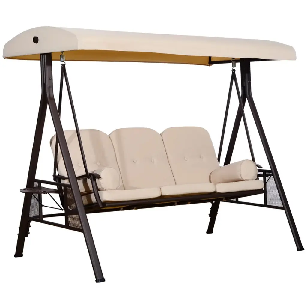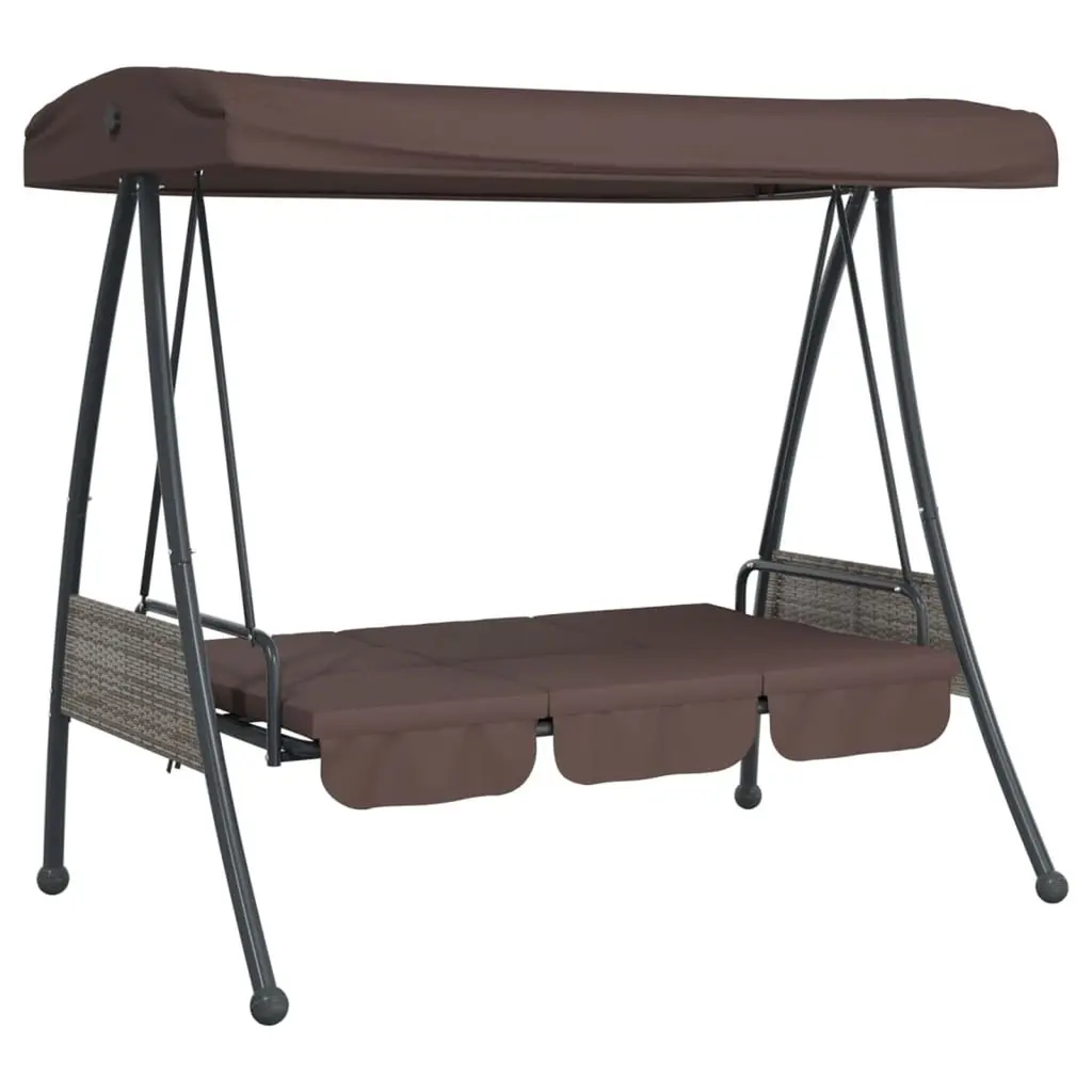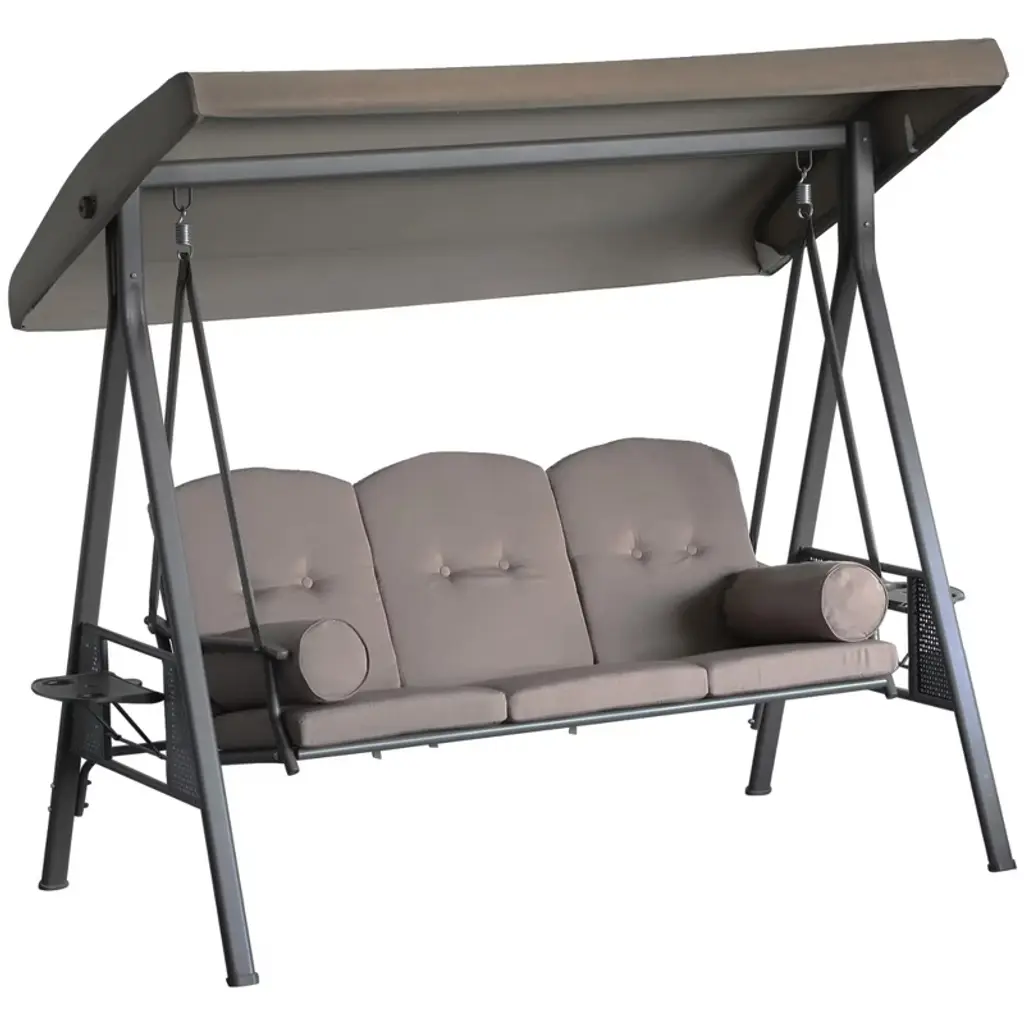 This stylish garden swing bench gives you a comfy and laid-back spot to unwind, whether in a lovely garden or a lively balcony. Its modern design and rich coffee brown color add a warm vibe that blends perfectly with nature, making it not just practical, but also a stylish touch to your outdoor area. • Adjustable Canopy: The canopy can be adjusted from 0 to 60 degrees manually, so you can choose how much sun you want or need, making it comfy and versatile for any weather.• Durable Construction: Made from tough powder-coated steel, this swing bench is built to handle the outdoors, ensuring it'll last while looking good. It’s sturdy to keep you safe while you unwind.• Convertible Functionality: This swing bench easily switches between seating and lying down, giving you the versatility for socializing or simply chilling by yourself. Perfect for all sorts of occasions, from parties to quiet afternoons.• Large Seating Capacity: Designed to comfortably seat up to three people, this swing bench is great for gatherings. Its spacious seating and supportive backrest make it a fantastic lounge area for family or friends.• Easy Maintenance: The weather-resistant fabric makes cleaning a breeze. Just wipe it down with a damp cloth to keep it looking nice. Enjoy your swing without worrying about upkeep.