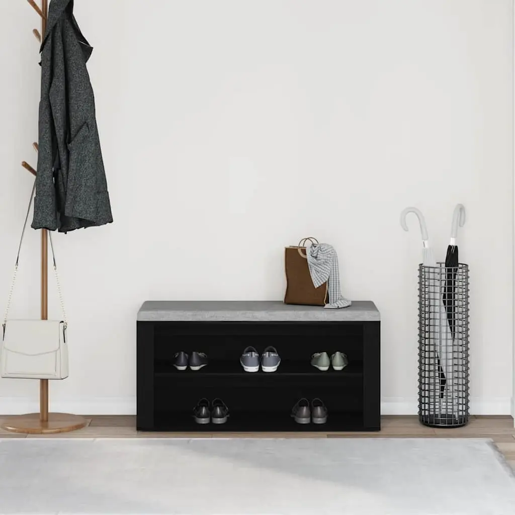 Vidaxl Shoe Bench Black Oak 39.4"x 13.8"x 17.7" Engineered Wood