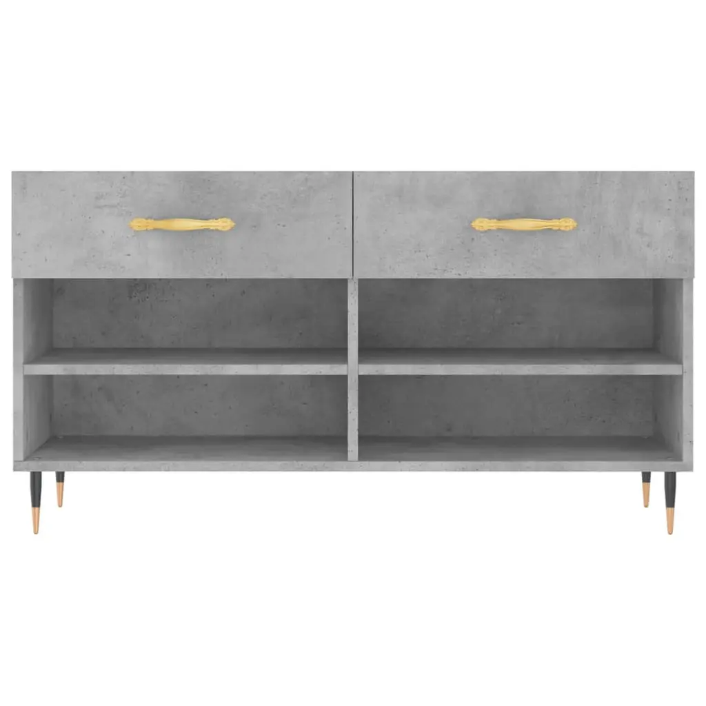 This shoe storage bench is both stylish and practical, making it a must-have for your hallway or living room. The sleek concrete grey finish with engineered wood and iron legs creates a contemporary look that not only organizes your shoes but also provides comfy seating after a long day. Its size fits well in small spaces and enhances your home decor with a modern touch. It’s great for anyone who likes to stay organized while still looking good. Loads of Storage: This shoe bench has four big shelves and two drawers, giving you loads of room for shoes, accessories, and other bits. Ideal for families and busy lives.Strong Build: Made from engineered wood and sturdy iron legs, this bench is stable and built to last, perfect for everyday use.Chic Look: With its sleek design and concrete grey finish, it fits in with all kinds of interior styles, adding a touch of class to any room.Perfect for Tight Spaces: Its compact size makes it a great fit for hallways or small entryways, turning messy spots into organized areas.Hassle-Free Cleaning: With easy care instructions, keeping this shoe bench looking fresh is simple, letting you spend more time enjoying your space and less time cleaning.