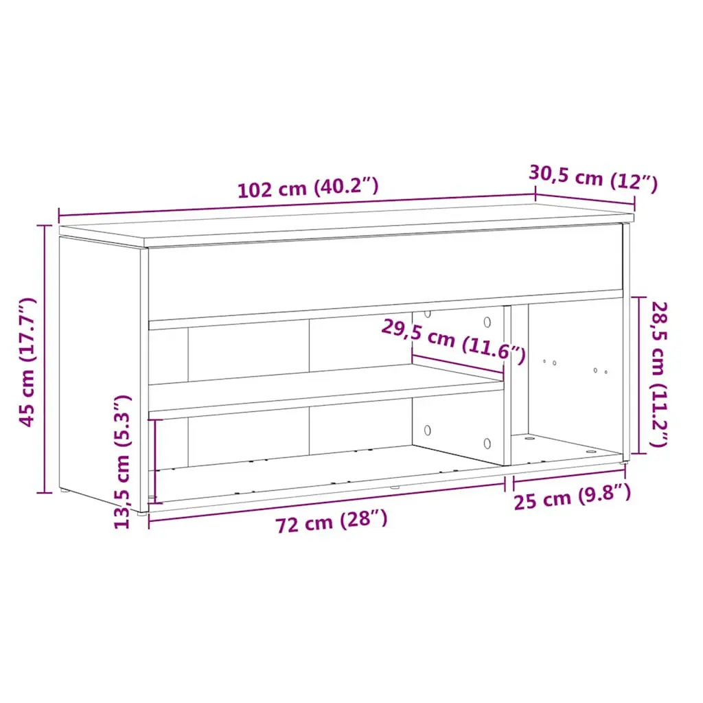 Vidaxl Shoe Bench Grey Sonoma Engineered Wood 40.2 X 12.0 X 17.7 In