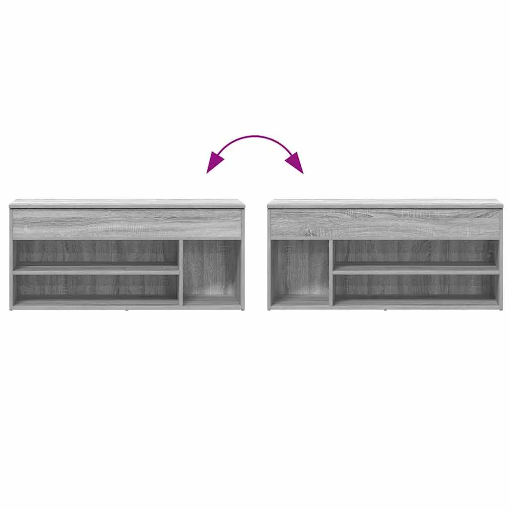 This shoe bench combines handy storage with the comfort of a seat, making it an essential addition to any entryway or hallway. Its modern grey sonoma finish and clean lines create a stylish focal point, while providing a functional space for organizing shoes and belongings. Ample Storage: The bench has loads of compartments to hold at least three pairs of shoes, keeping your entrance tidy and organized. Its two shelves also give extra storage space, great for shoes, bags, or personal items that need to be on hand. Comfortable Seating: With a seat height of 17.7 in, this shoe bench makes sitting down to put on or take off shoes a doddle. The smooth surface and solid frame provide comfort and stability, perfect for daily use. Durable Construction: Crafted from engineered wood, this bench is made to handle everyday use while keeping its classy look. The matte finish boosts durability and adds a stylish touch to the overall design. Elegant Design: Its sleek, modern design makes this bench a doddle to fit into any home decor. The grey sonoma color and clean lines contribute to its function and attractive look, upgrading the atmosphere of any hallway. Easy to Maintain: This bench is super simple to clean; just give it a wipe with a damp cloth to keep it looking fresh. Less fuss over maintenance means more time to enjoy its beauty.