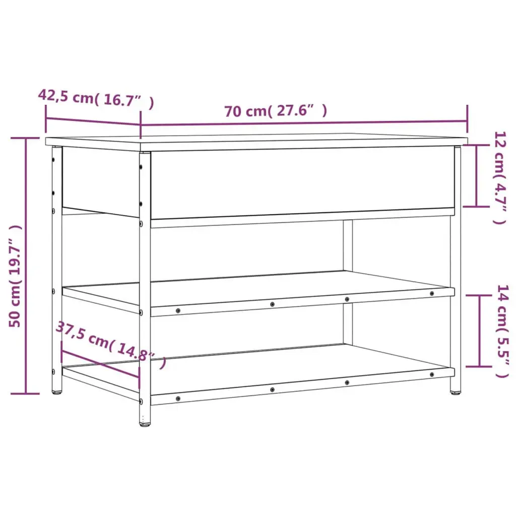 Vidaxl Shoe Bench Grey Sonoma Engineered Wood And Metal Medium