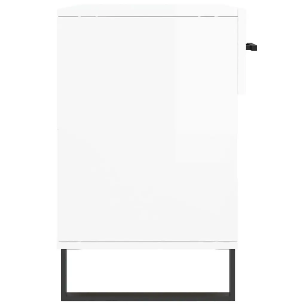 Vidaxl Shoe Bench High Gloss White Engineered Wood, Iron