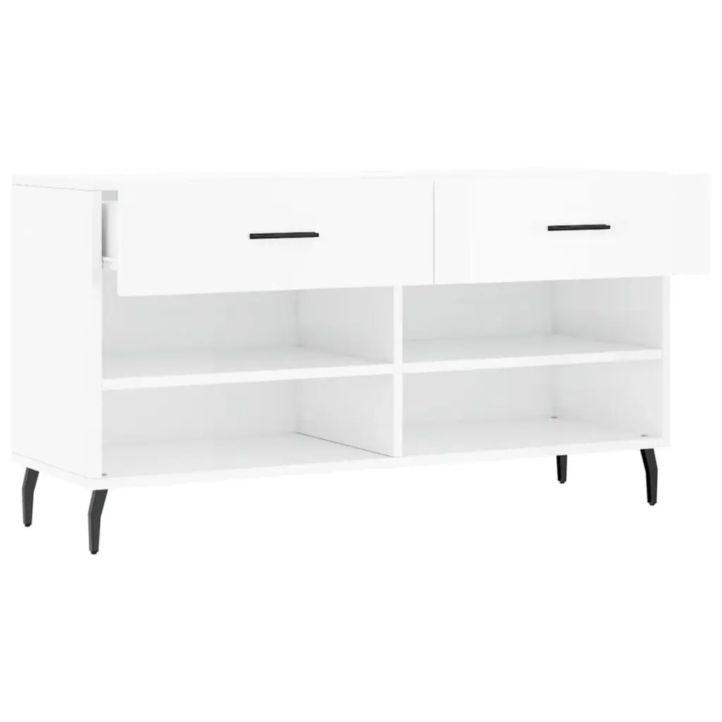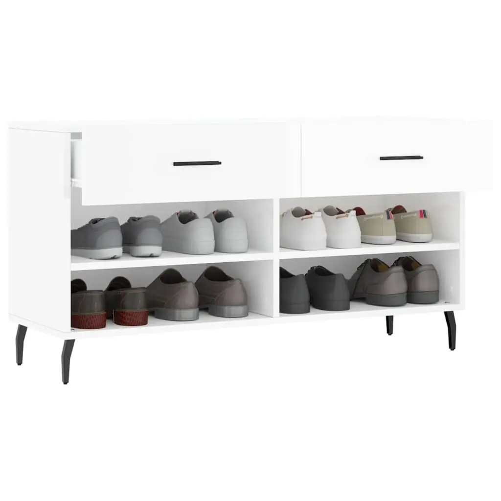 This shoe storage bench is not just a pretty face; it doubles as a comfy seat and a handy storage spot. It's spot-on for entryways or hallways, with its sleek high gloss white finish that looks fab while keeping your shoes in order and adding a modern twist to your pad. Loads of Storage: With four spacious shelves and two drawers, this bench gives you plenty of room to keep your shoes tidy and close at hand. Each shelf fits different shoe sizes, making it a must-have for anyone. Shiny Finish: The high-gloss white finish not only makes the bench look great but also ensures it's easy to clean. The smooth surface keeps dust and dirt at bay, making maintenance a piece of cake. Strong Build: Made of solid engineered wood with sturdy iron legs, this shoe bench is designed to last. It's built to handle everyday wear and tear, so it can support all sorts of footwear without wobbling. Multi-purpose: Perfect for entryways or living rooms, this bench gives you a comfy spot to sit and loads of storage, making it a great addition for any area needing some tidying up. Space-efficient: At 40.2 in long, 13.8 in wide, and 21.7 in high, this storage bench fits nicely in various spots, so it won't clutter your home while adding the functionality you need.