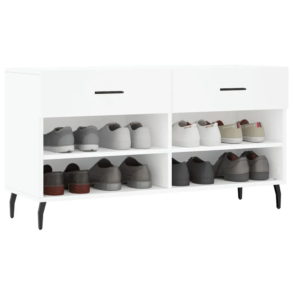 This shoe storage bench combines functionality and good looks, making it a fantastic addition to any entry or hallway. With its smart lines and simple design, it provides plenty of space to keep shoes tidy while also offering a comfy seat, creating an inviting vibe in your home. Loads of Storage: This shoe storage bench has two spacious drawers and four shelves for all your shoes and extras, keeping your entryway neat and tidy.Sturdy Build: Made from high-quality engineered wood, this bench is tough and built to last, perfect for daily use.Stylish Look: The modern industrial style fits well with various home themes, adding a fresh touch to your space.Multi-Functional: Great for hallways or living rooms, this shoe bench doubles as a seat, making it perfect whether you’ve got a busy household or just want a chill spot.Simple Assembly: This product comes with straightforward assembly instructions and all the required tools so you can set it up quickly and easily.