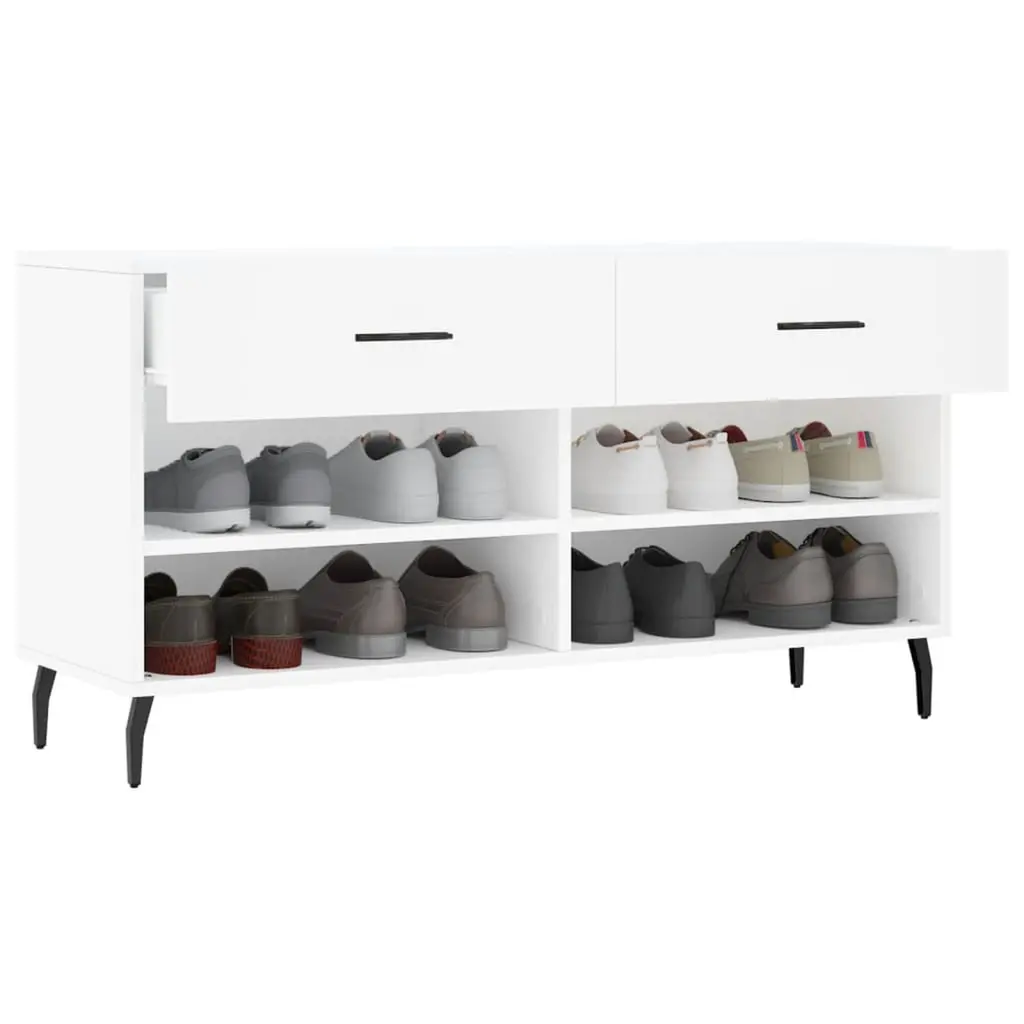 Vidaxl Shoe Bench White Engineered Wood, Iron 40.2 X 13.8 X 21.7 In