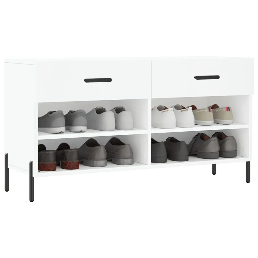 This shoe storage bench is the ideal blend of smart design and practical use for your entryway. Made from high-quality engineered wood and held up by strong iron legs, it's a stylish yet sturdy piece. You can sit down easily while taking off or putting on your shoes, with loads of space below to keep several pairs, making sure your space looks tidy and inviting. Stylish Appearance: The matte white finish and clean lines give this shoe bench a modern look that fits perfectly into any décor.Robust Materials: Built with moisture-resistant engineered wood and solid metal, ensuring long-lasting durability and stability.Space Optimization: With four shelves, it maximizes storage without compromising style, perfect for keeping shoes and small items organized.Comfortable Seating: Designed to seat one person comfortably, this bench is great for quick shoe changes or storage as you enter your home.Easy to Clean: The smooth surface needs little maintenance - just a damp cloth will do to keep it looking sharp.