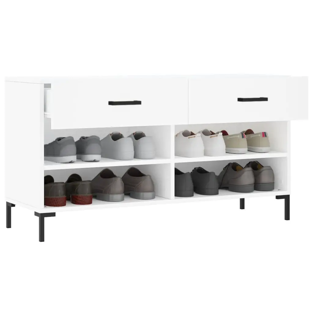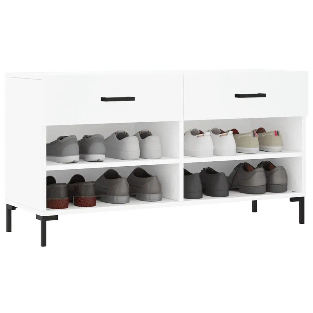 This shoe storage bench is a stylish and practical addition to any entryway or living space. With clean, modern lines and a pristine white finish, it fits in with various styles while giving you loads of storage for your shoes and bits, keeping everything neat and tidy. Ample Storage: The built-in storage provides loads of space for keeping shoes organized, making sure your entrance looks great. It's perfect for daily use, easy for storing and grabbing footwear.Durable Design: Made from high-quality engineered wood and iron, this shoe bench is built to handle daily wear and tear, ensuring it lasts. The tough surfaces resist damage and look good for ages.Adjustable Shelves: Fitted with four adjustable shelves, this bench allows you to tweak your storage based on your shoe types and preferences. This makes it great for everything from boots to sneakers.Stylish Finish: The matte white finish not only looks fab but also blends right in with any decor, giving your space a modern feel. Its clean look is easy to match, boosting your home's vibe.Compact Design: At 40.2 in long, 13.8 in wide, and 21.7 in high, this bench fits perfectly in narrow hallways or small entry areas without taking over the space. Ideal for apartments or smaller homes.