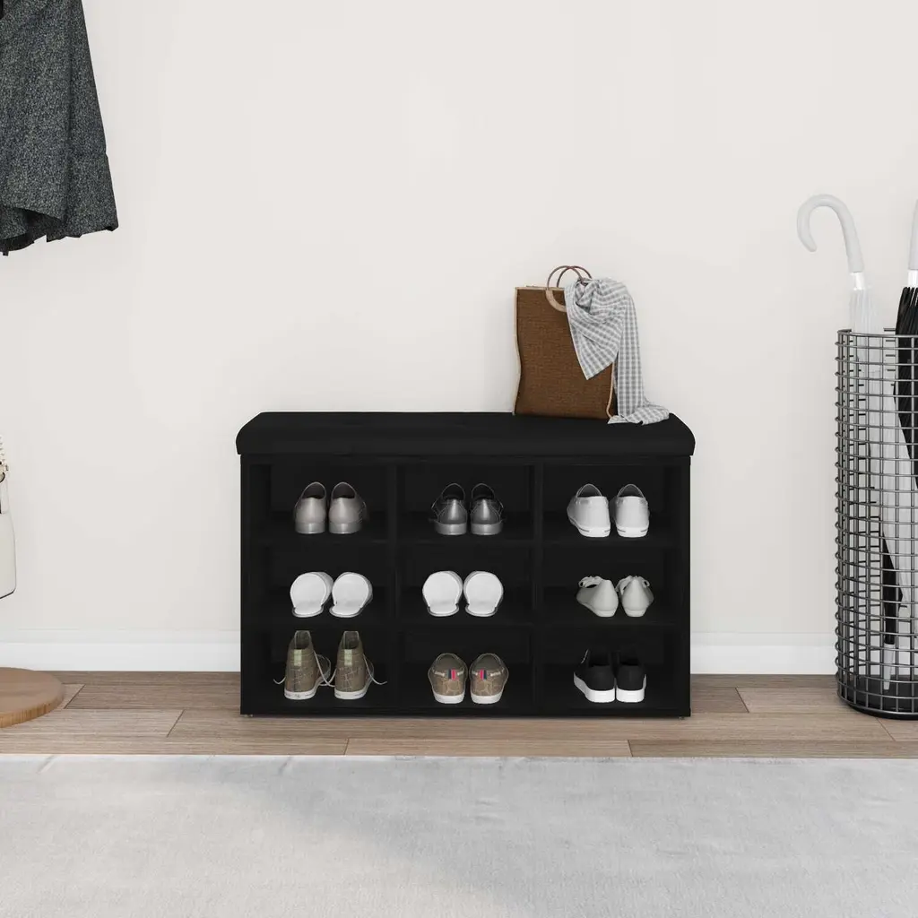 Vidaxl Shoe Bench With Storage Black 80 X 30 X 48 Cm Engineered Wood