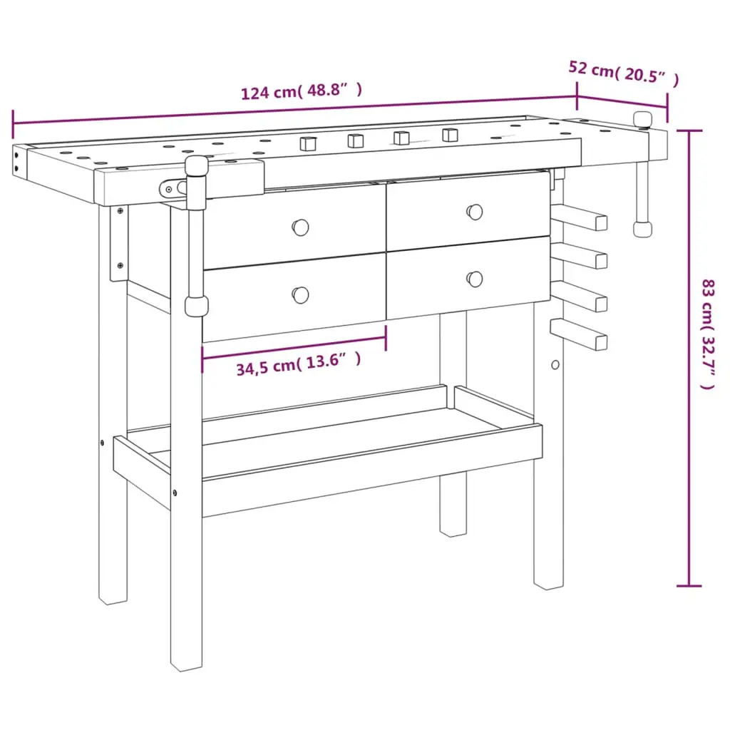 Vidaxl Workbench With Drawers And Vices 48.8"x20.5"x32.7" Solid Wood Acacia