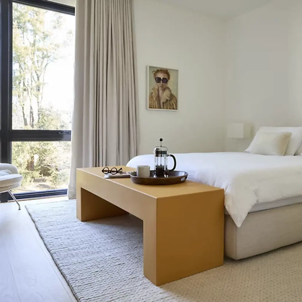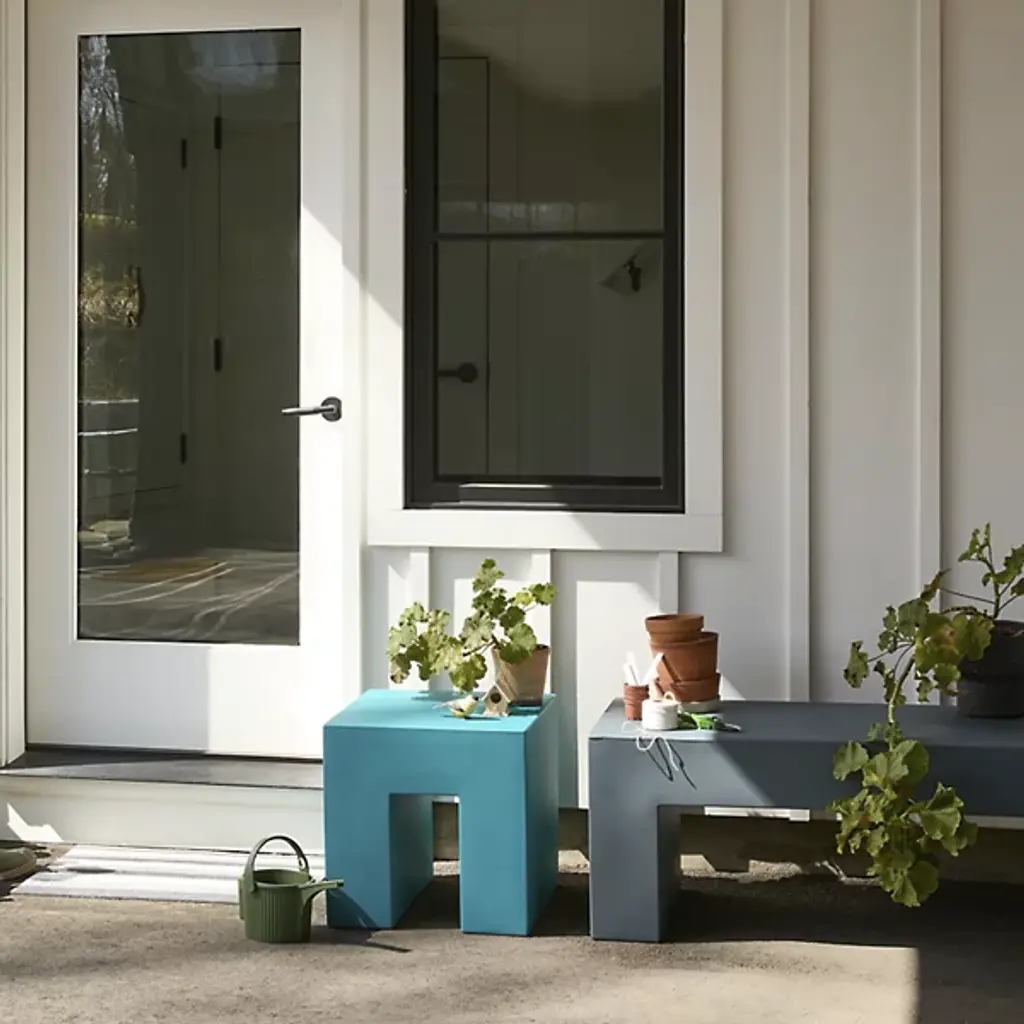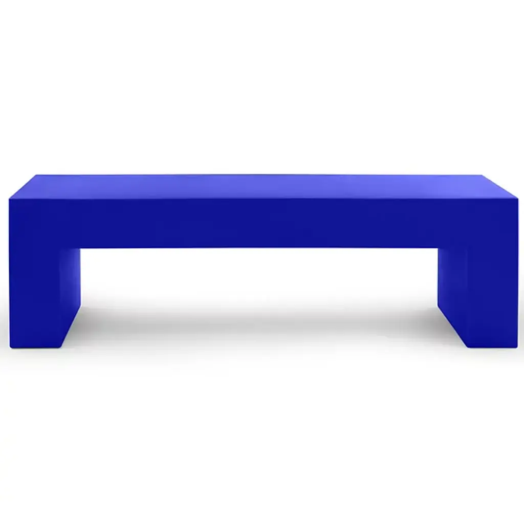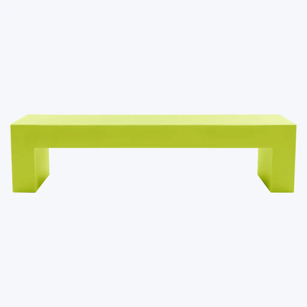 A bench that's long on contemporary style as well as convenient seating. At 6 feet wide, the Heller Furniture Vignelli Bench can easily seat 3 people. While it looks like concrete, the Outdoor Bench is actually made out of one piece of grey polyethylene, which ensures the bench's durability in just about any setting, indoors or out.