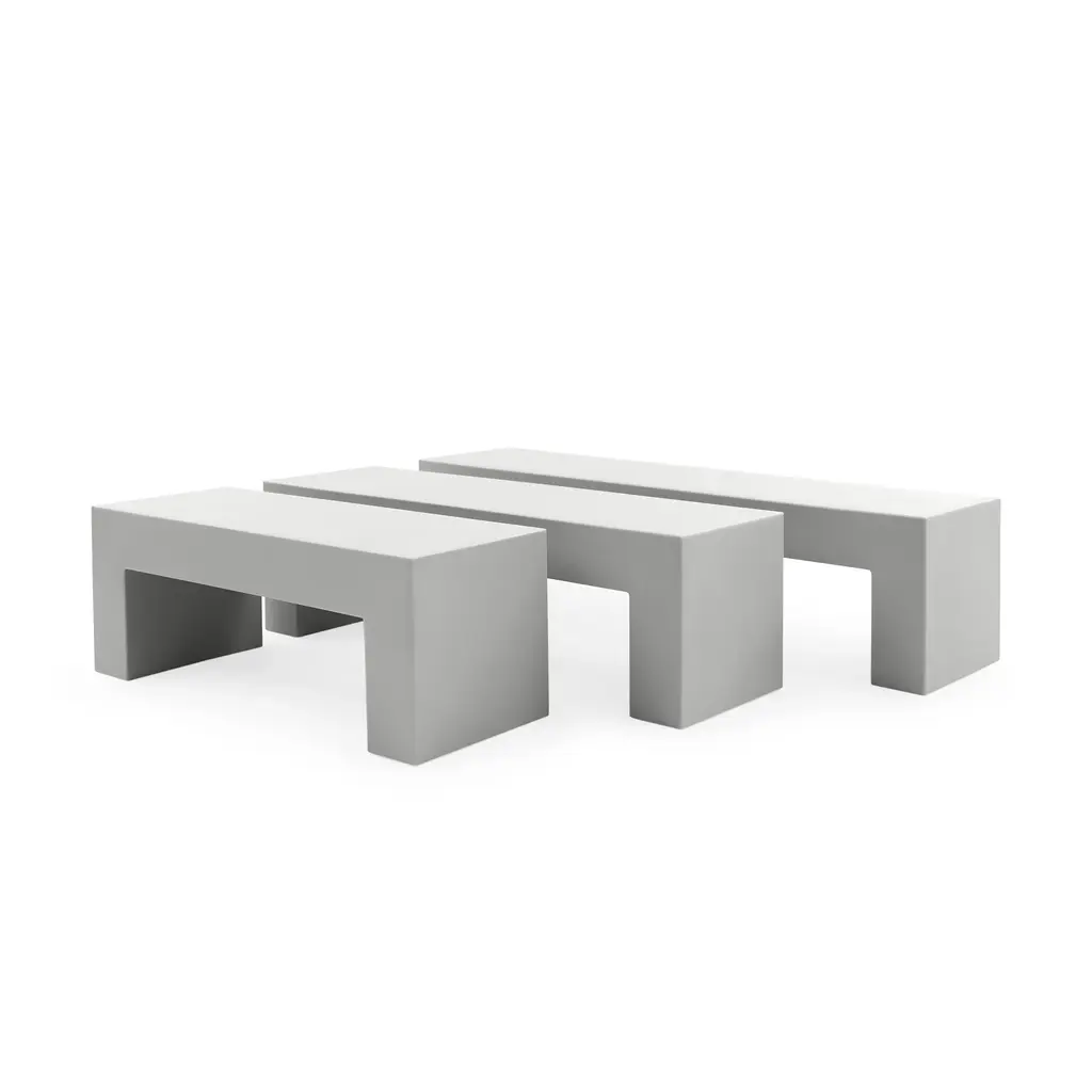 An indoor/outdoor statement-making bench crafted in the USA. Distinguished by a bright pop of color, this chunky, minimalist bench was conceived by Lella and Massimo Vignelli, designers with work in MoMA’s collection. Made in the USA from highly durable and 100% recyclable polyethylene, the Vignelli Bench is a truly versatile design, made to live both outdoors and inside your home. Use it in your backyard for gatherings, near the pool, or as a place to sit during family gaming activities. Inside, the bench is ideal for your entryway as a place to remove your shoes or place grab-and-go items. The Vignelli Bench also makes a statement-making coffee table or a place for blankets or a breakfast tray at the foot of your bed. Thanks to its weather-proof material, the bench can be left outside. Made by Heller, a manufacturer with work in the Museum’s collection.