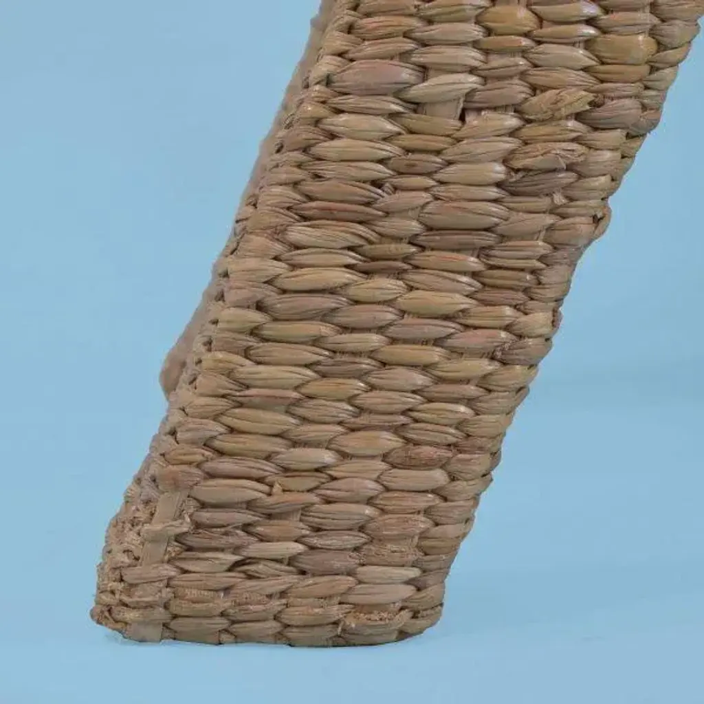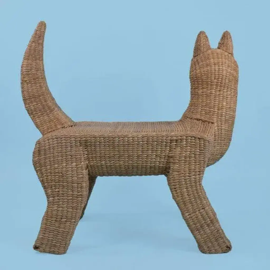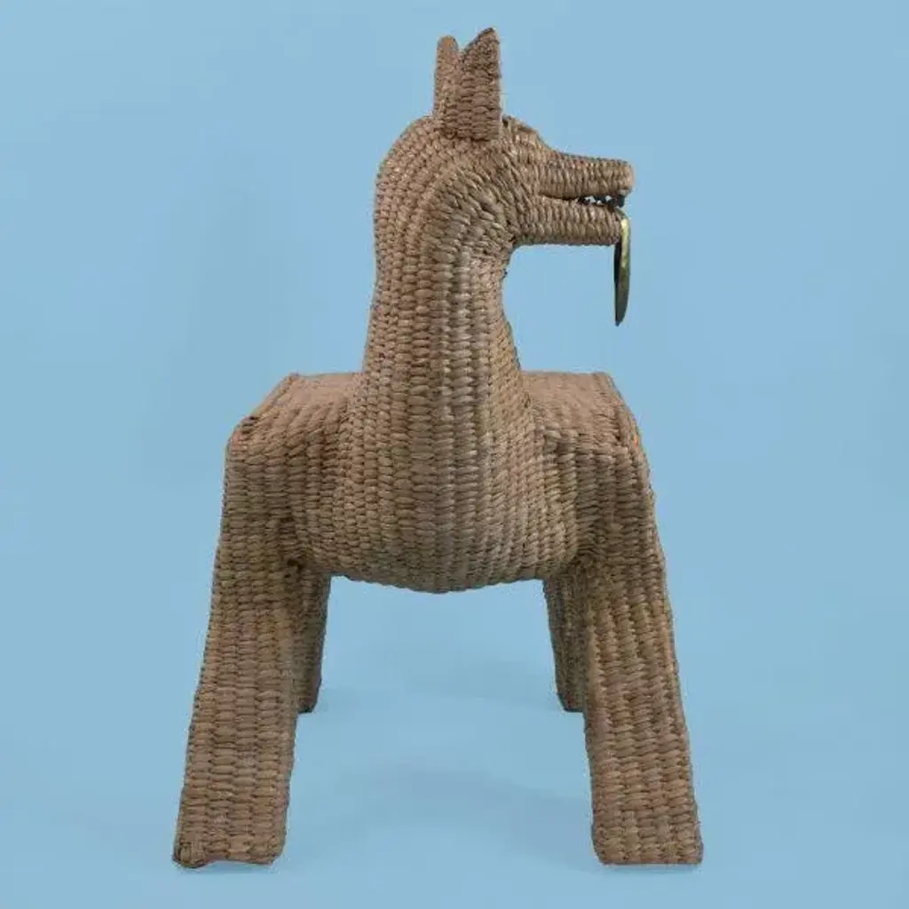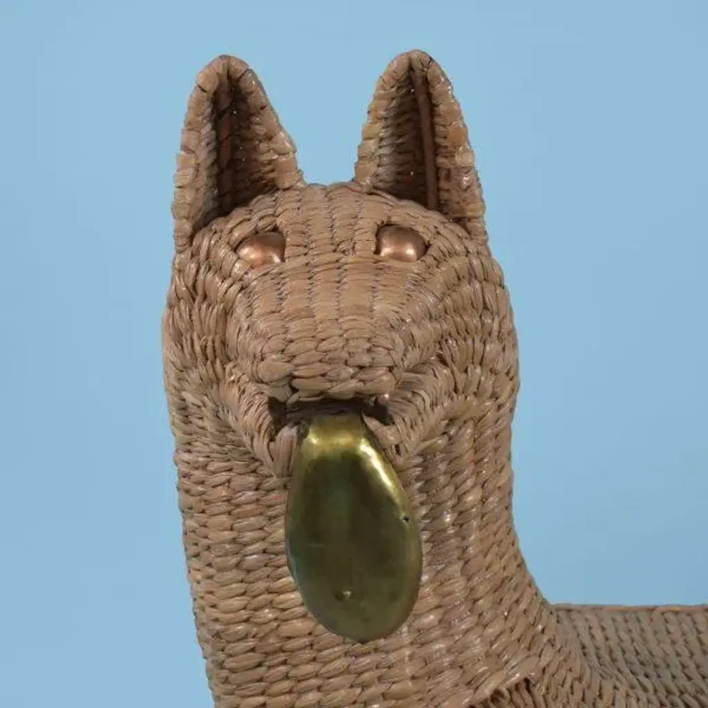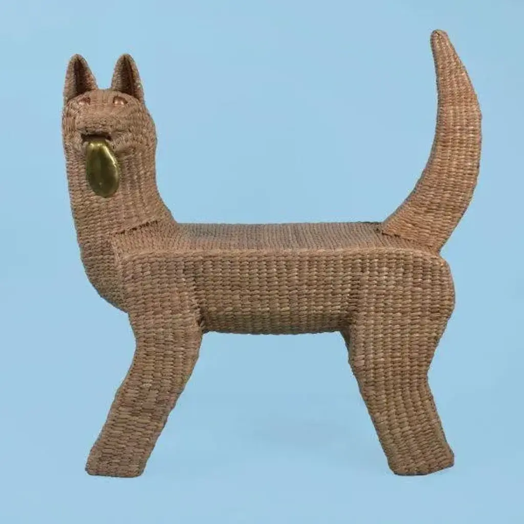 Vintage Prehispanic Coyote Bench There are minor imperfections to the hand-made woven rattan. Signed Mario Lopez Torres Est. 1974. Brass accents. (see photos)