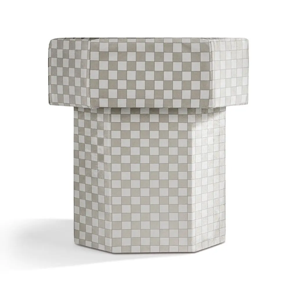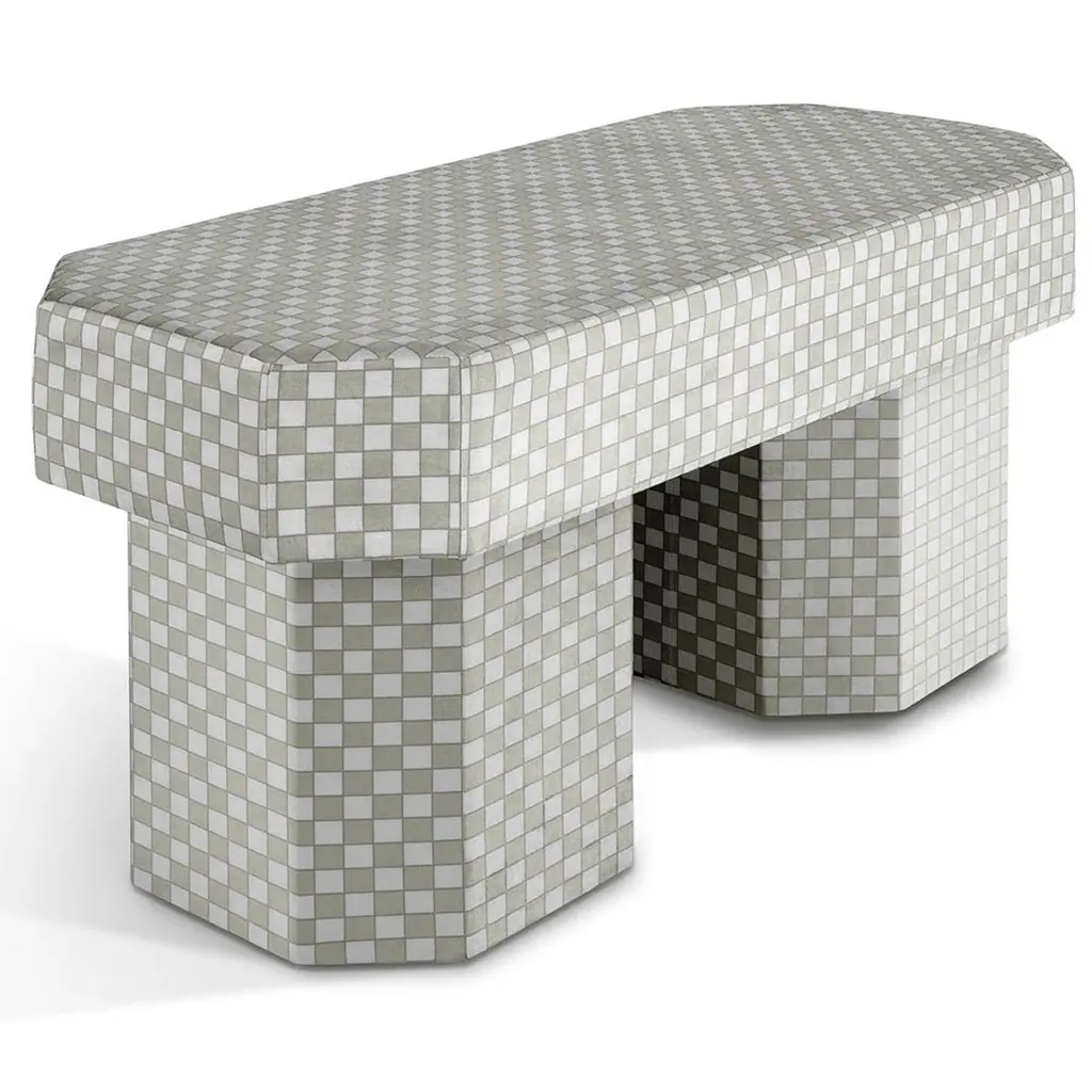 Viva Checkerboard Beige And White Sculptural Velvet Bench By Houtique