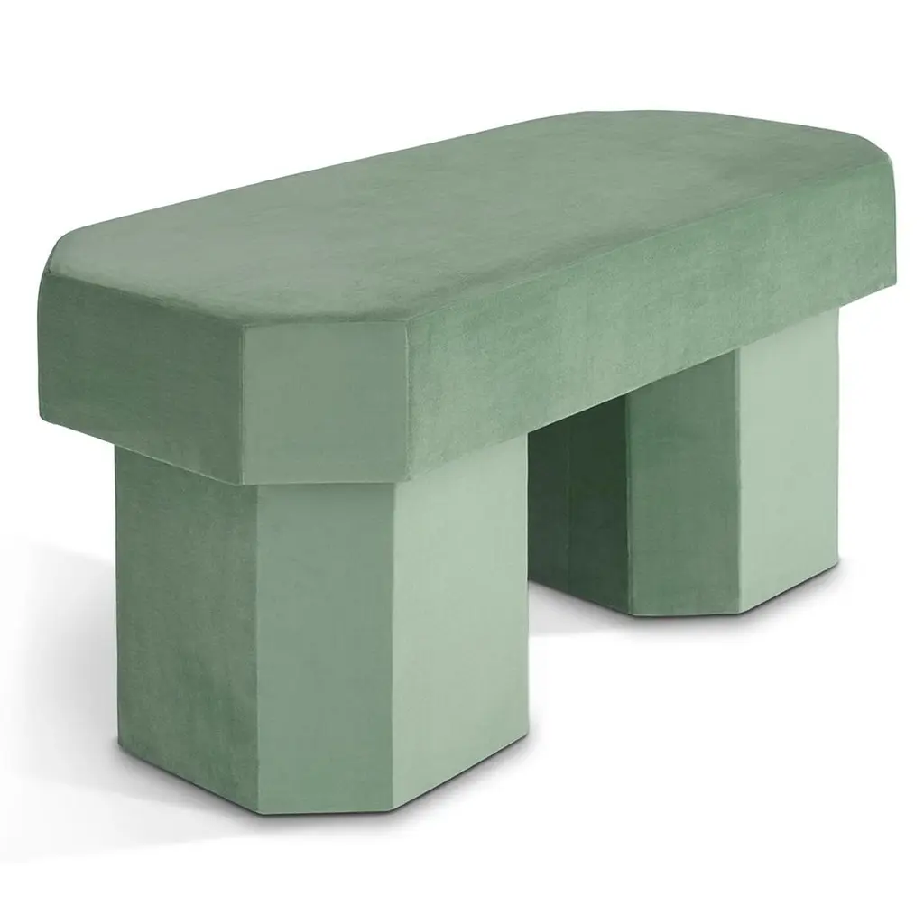 Viva Green Contemporary Sculptural Velvet Bench By Houtique