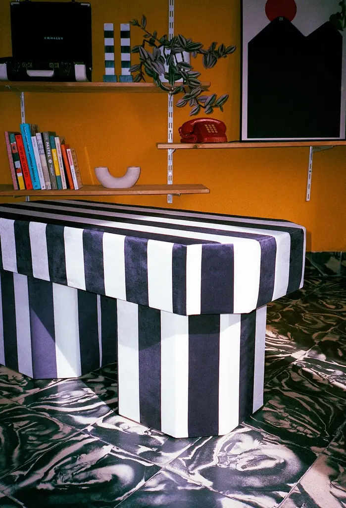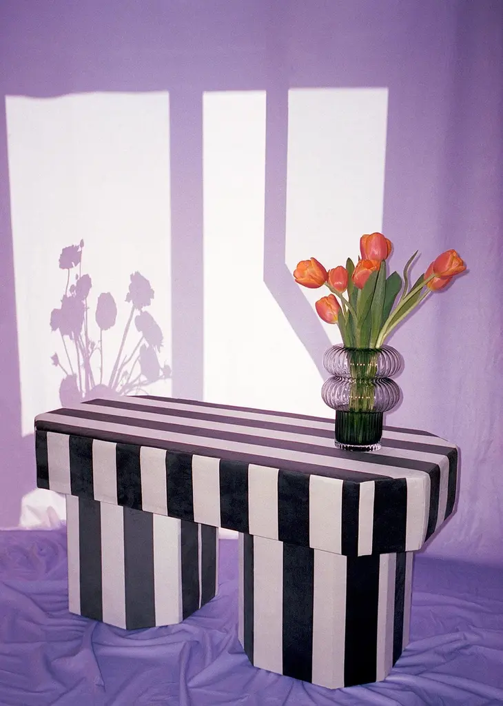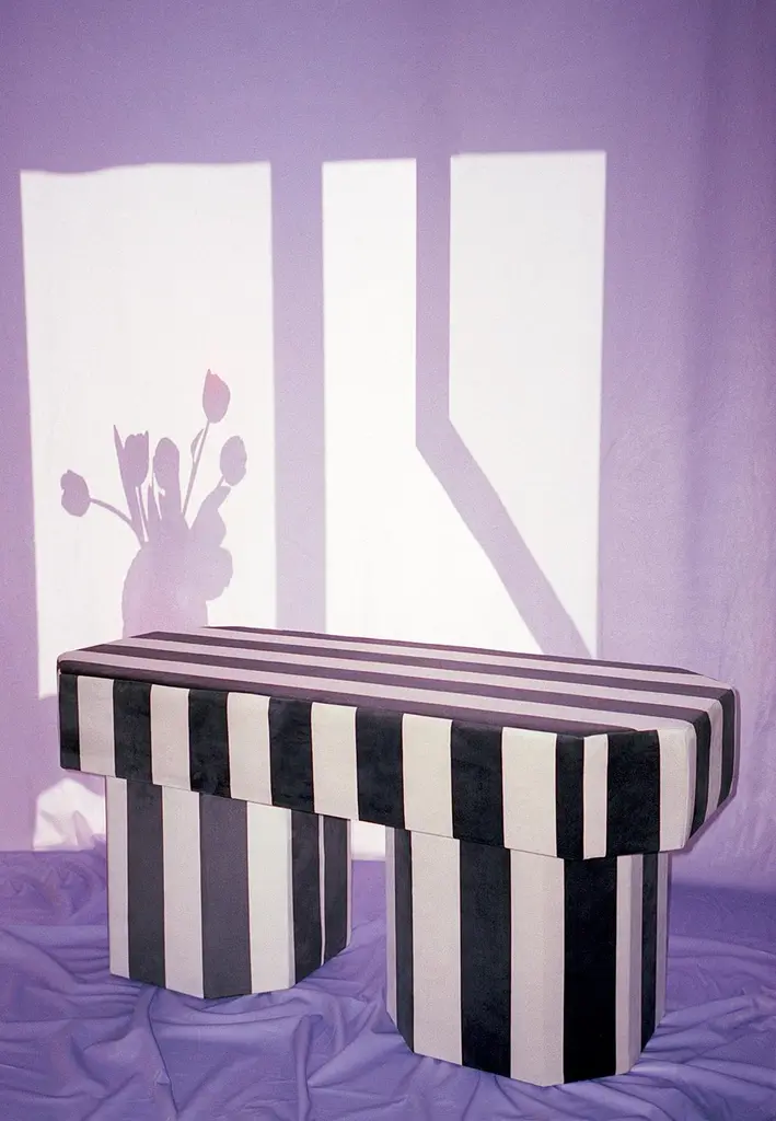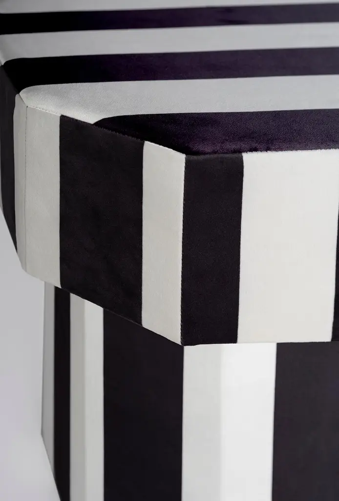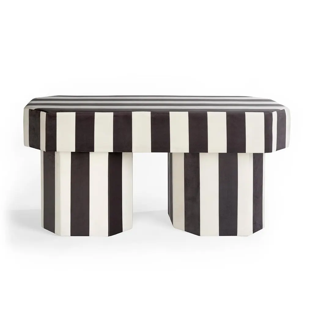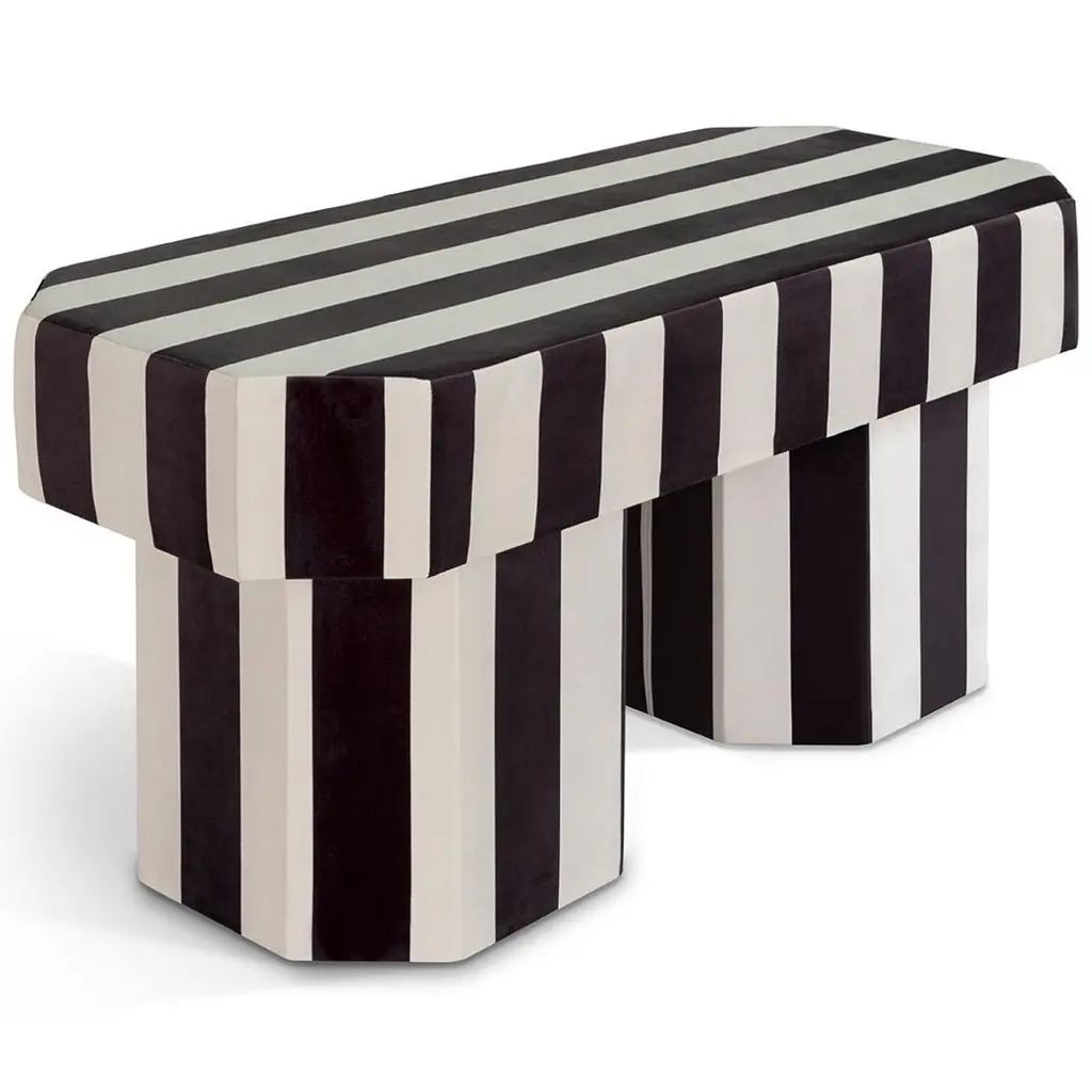 Viva Stripe Black and White Bench by HoutiqueDimensions: D 100 x W 45 x H 48 cmMaterials: Velvet, Upholstery, WoodAlso available in different colours. Please contact us.VIVA BENCH.Designed by Carolina Mico. Made in Spain.Upholstered bench in flame-retardant velvet, with a wooden frame andhigh-density foam (35 kg super soft hazelnut).HOUTIQUE presents VIVA. Subtlety and rotundity in a bench that plays with your perception.Discover HOUTIQUE’s experimental atelier, a space where creativity and craftsmanship come together thanks to constant curiosity.HoutiqueExotic rhythms, champagne toasts and velvet words. We were dancing when we found a sign that said "back to the future" and so we followed it. The sign took us here, to a sexy, luxe and fun dimension.We keep on dancing, we won't stop.