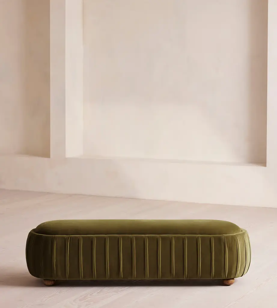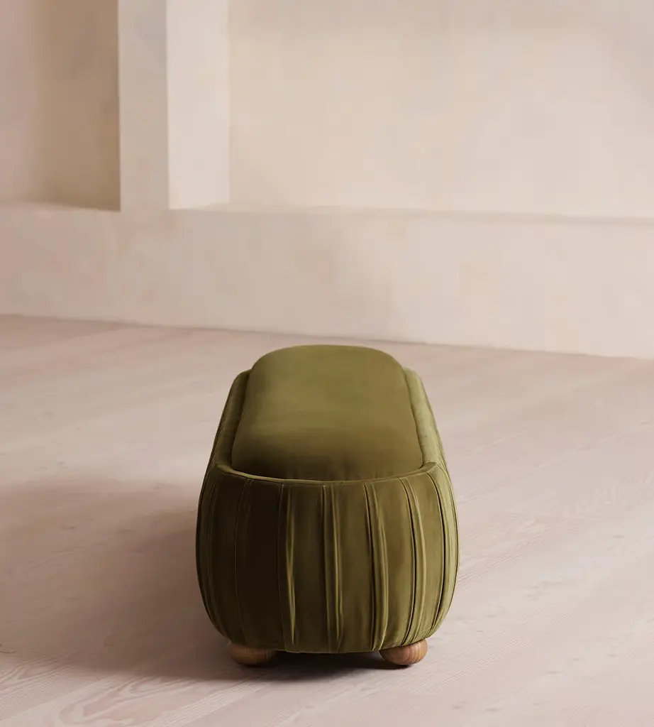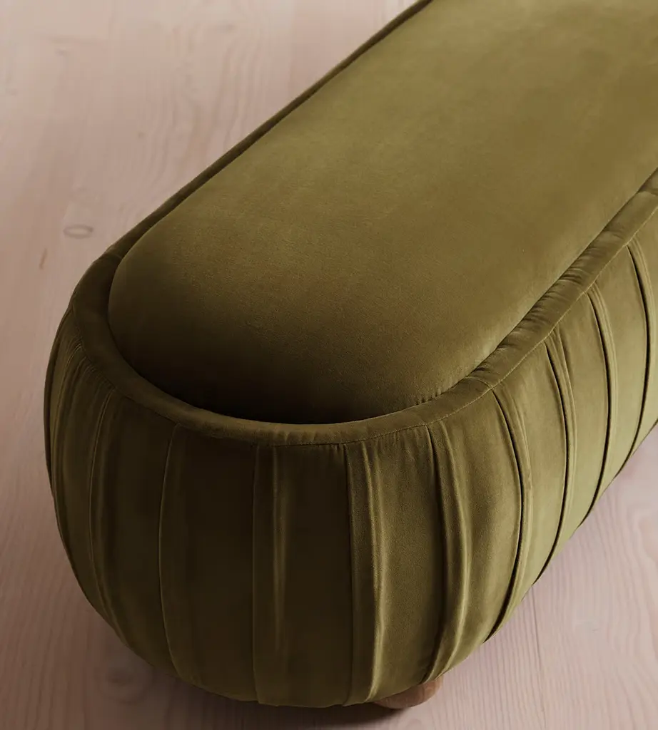 A rounded silhouette upholstered in tactile velvet is designed as an extension of our House favorite Vivienne range. Inspired by our members' favorite Vivienne sofa on the eighth floor of White City House, this bench is designed to perfectly complement the Vivienne bed. Its rounded silhouette comes fully upholstered in velvet in a range of bespoke colors.