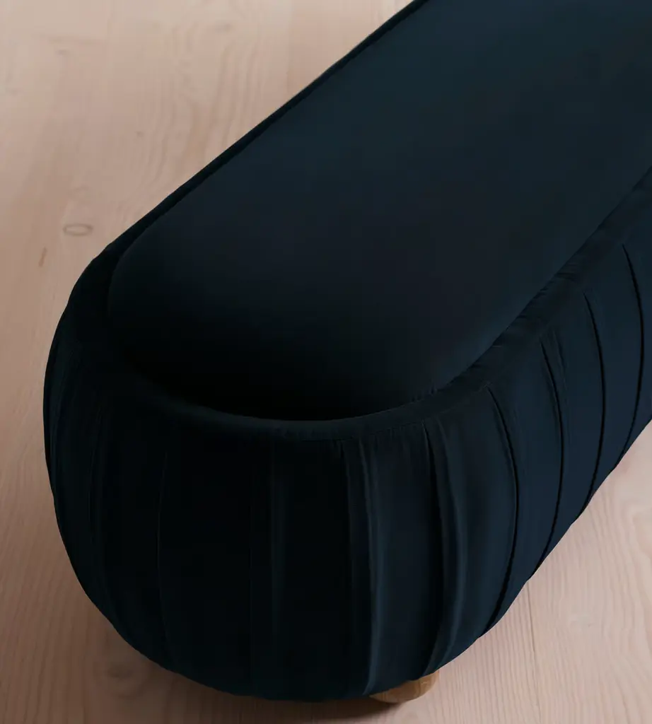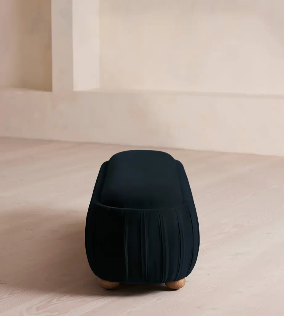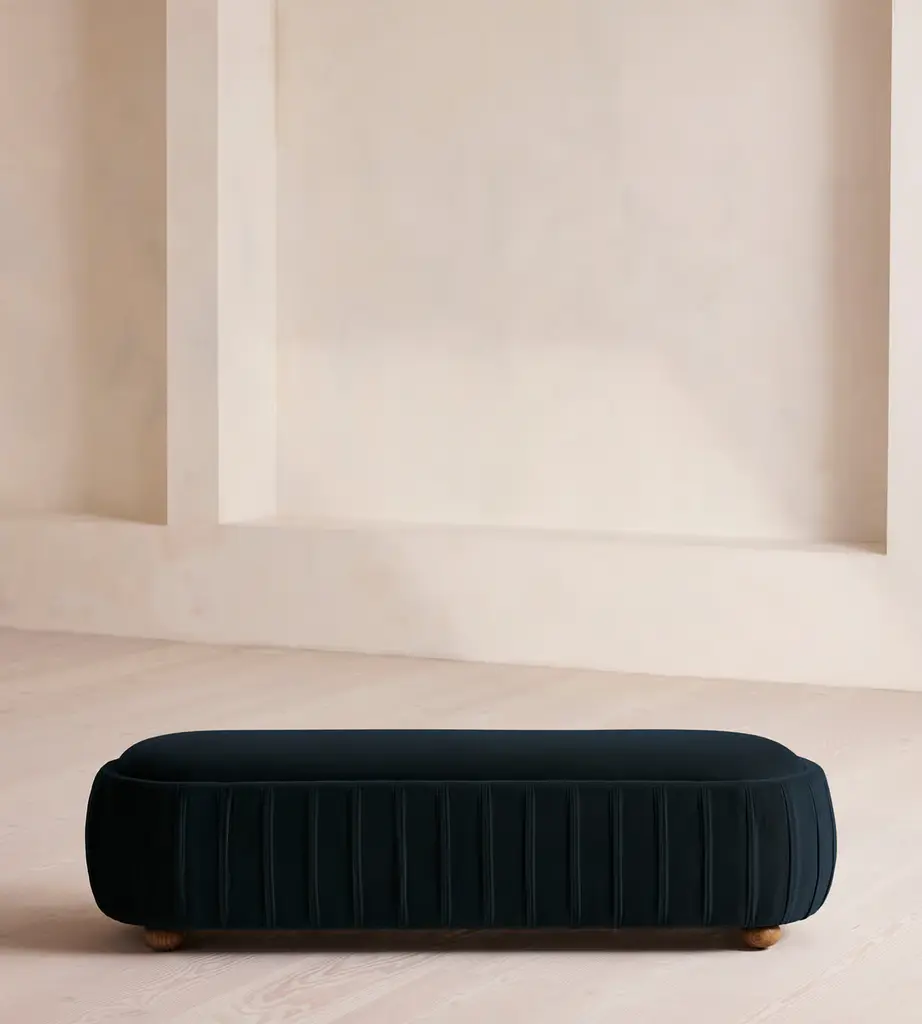 A rounded silhouette upholstered in tactile velvet is designed as an extension of our House favorite Vivienne range. Inspired by our members' favorite Vivienne sofa on the eighth floor of White City House, this bench is designed to perfectly complement the Vivienne bed. Its rounded silhouette comes fully upholstered in velvet in a range of bespoke colors.