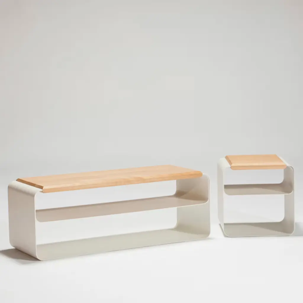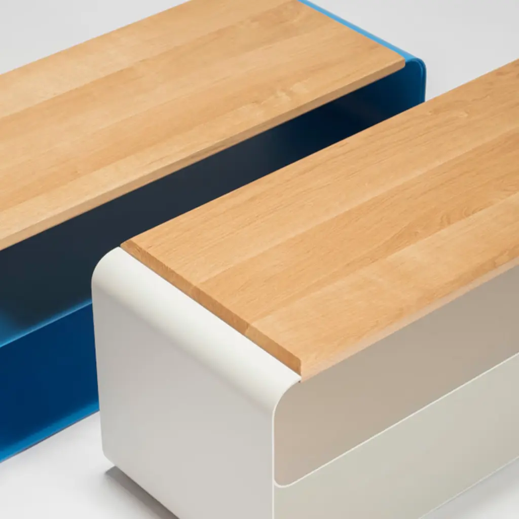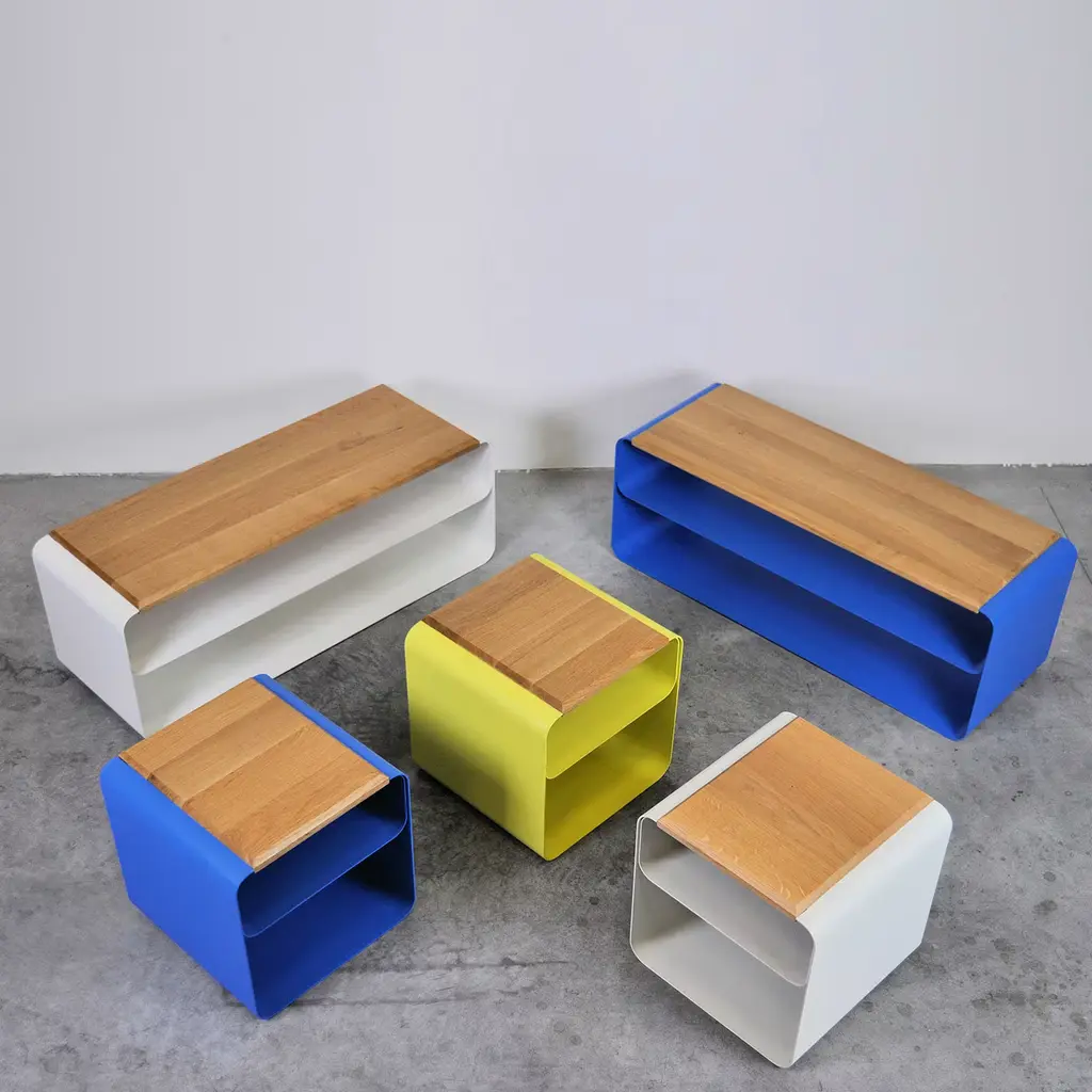 Vodo is a line of furniture redefining internal landscapes. Objects made of bent sheets of metal, recalling voids like windows opened towards inhabited spaces, sculptures that become a bench, a bookcase, a bedside table, or a console. Elementary forms are inspired by architectural shapes. Please ask the Concierge for further options.