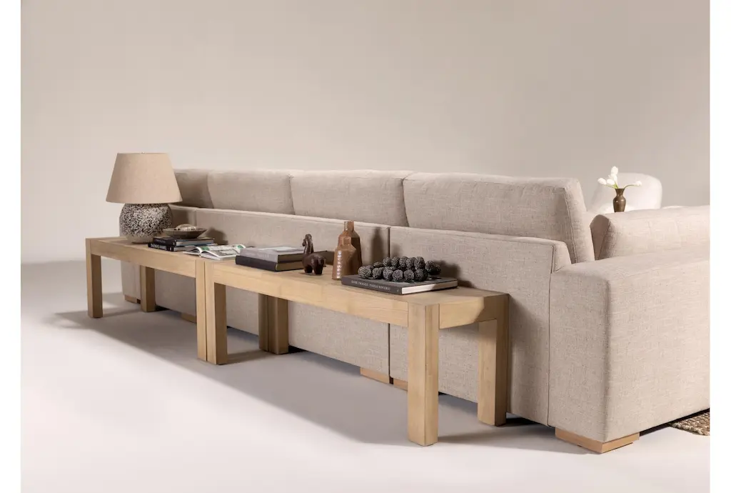 The Voyage Natural Wood 62" Dining Bench offers a perfect blend of modern design and natural materials, brought to you by Nate Berkus + Jeremiah Brent. Its rectangle shape and light wood finish make it a versatile addition to any dining or living room. Crafted from knotty white oak veneer and solid hardwood, this bench is both durable and easy to clean.