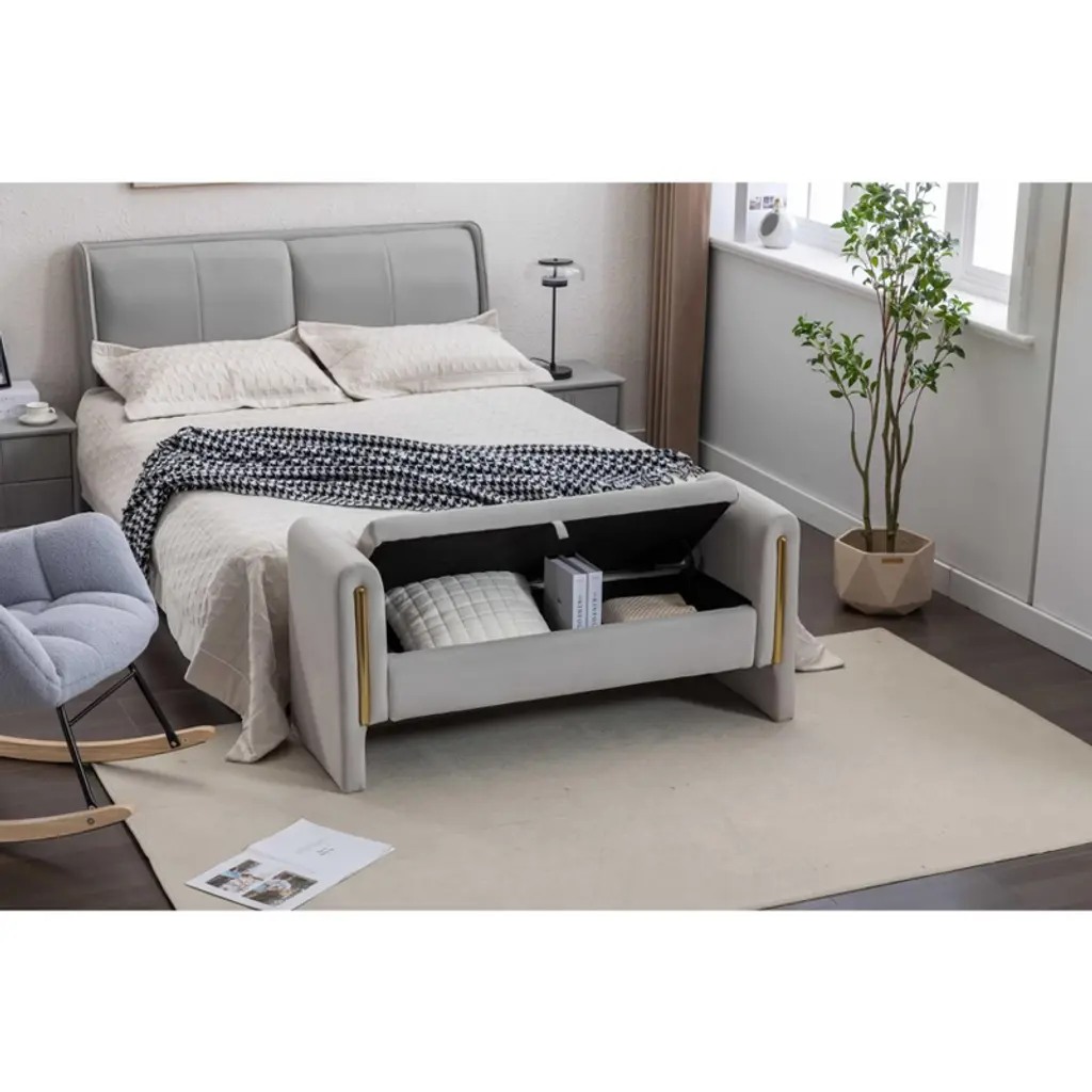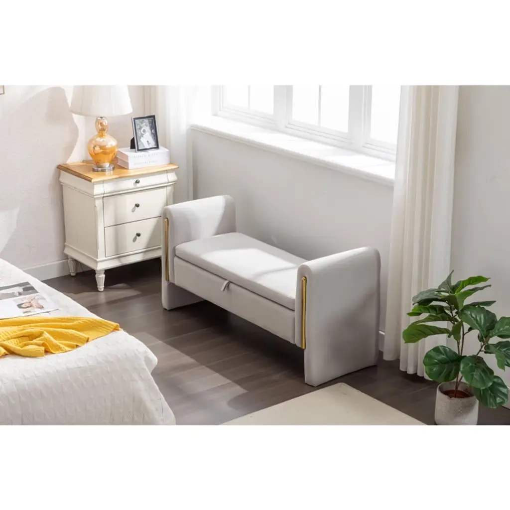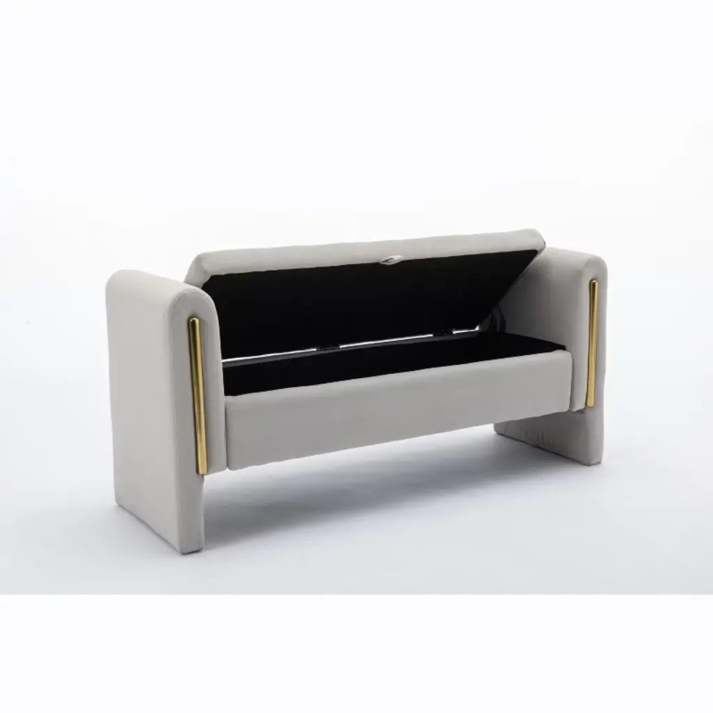 Vynxaria 032 Light Gray Velvet Storage Bench - A Stylish And Functional Indoor Essential