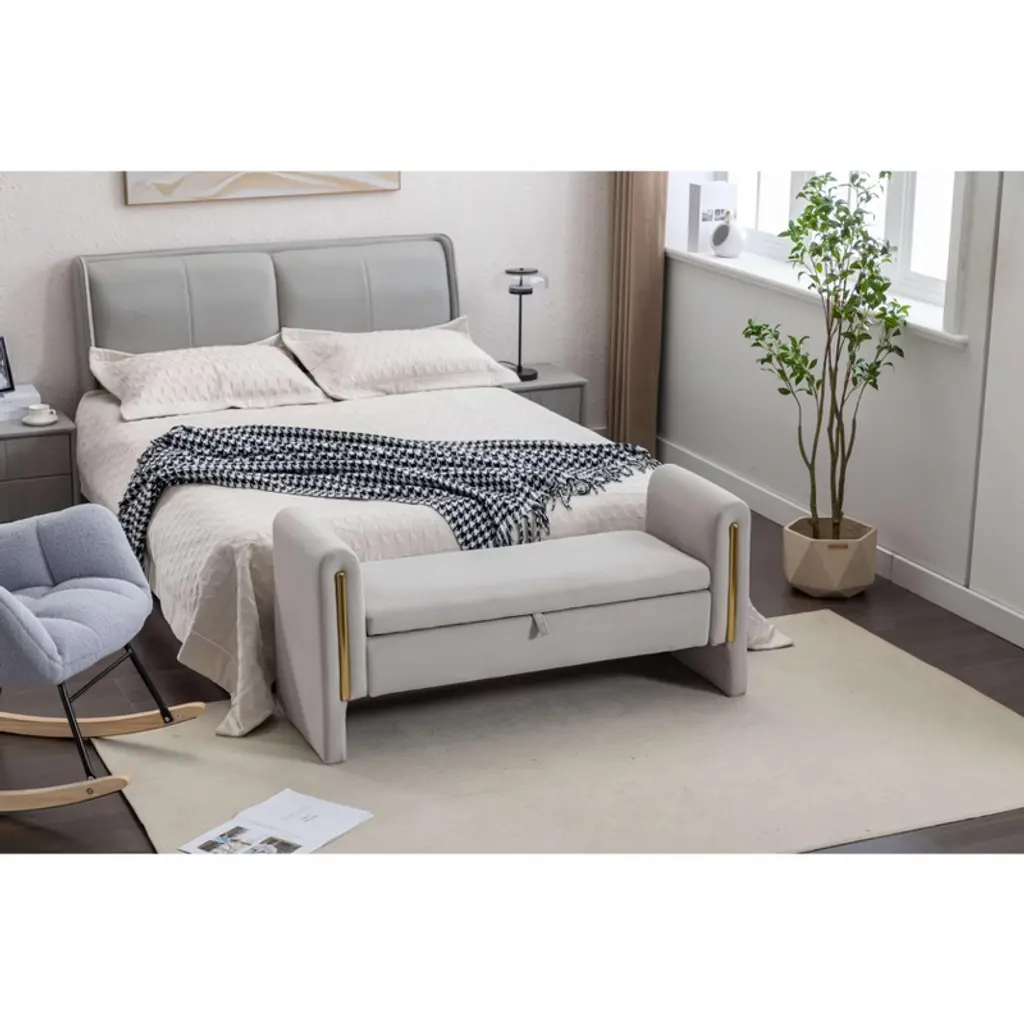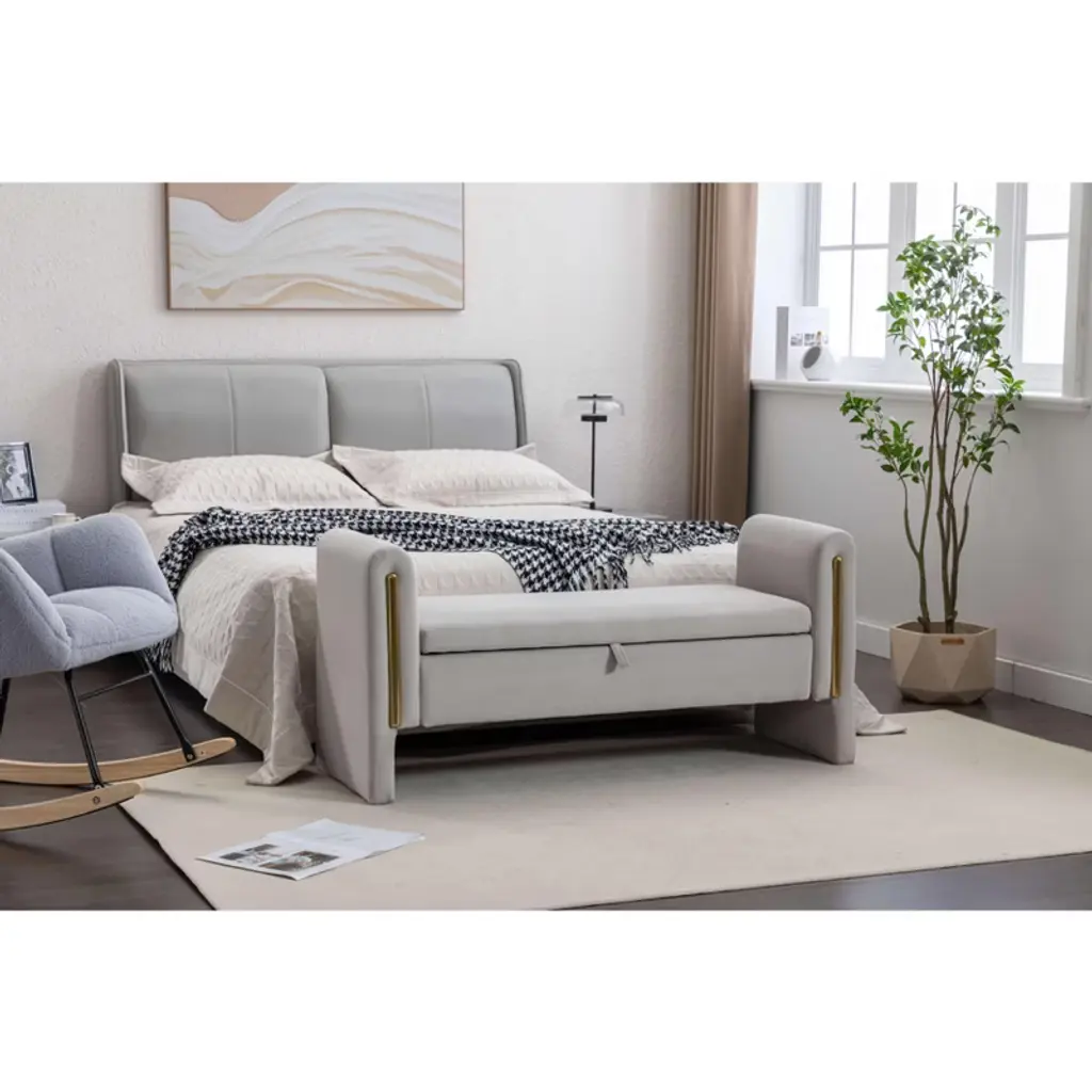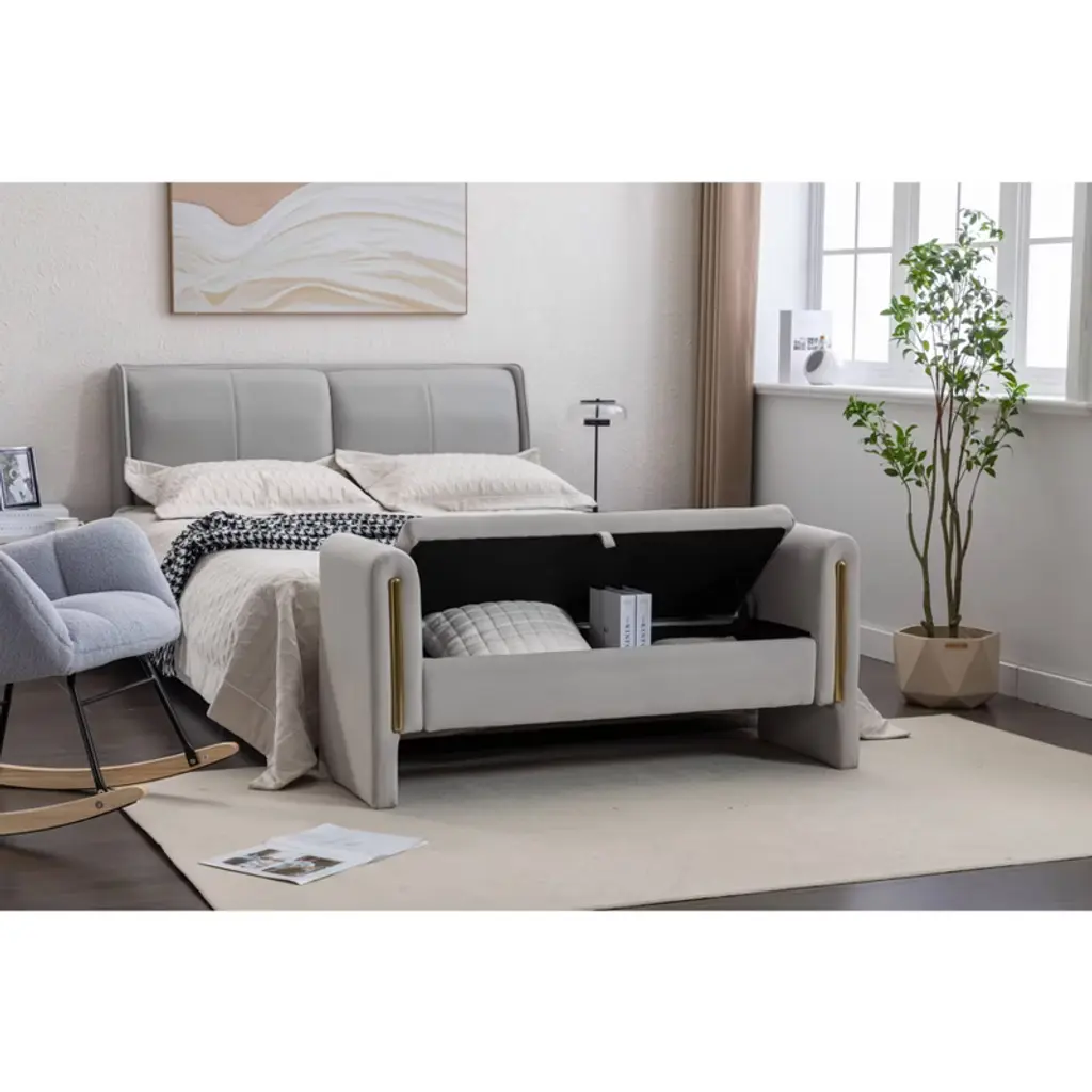 Vynxaria 032 Light Gray Velvet Storage Bench - A Stylish And Functional Indoor Essential