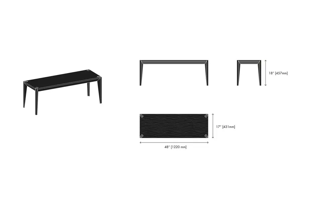 This versatile and essential bench is both iconic and minimal. The painted facets of its angular geometry capture the ever-changing gradients of light. The legs interlock into the notched top to create a beautiful joinery detail and sturdy construction. This slender and graceful bench fits underneath our MiMi table. The MiMi line was recognized as an NYCxDesign 2018 Honoree and German Design Award 2019 Nominee.Designed in Brooklyn by Italian-born architect Ale Preda for Miduny, this artisanal product is made in Italy by master craftsmen. The MiMi bench walnut black model features a solid 13-ply furniture-grade beech plywood structure, a black walnut veneer top, a grey-black painted finish at the facets (RAL 7021), and is coated with a 20% gloss finish.Each MiMi bench is hand-stamped with a unique serial number (on the underside) and comes with a signed certificate of authenticity. Like all our products, this item is efficiently packed for flat shipping inside a custom box, and minimal assembly is required. Our custom joinery system allows legs to be pressure fitted in the notched top and secured with two bolts. Assembly takes a few minutes.