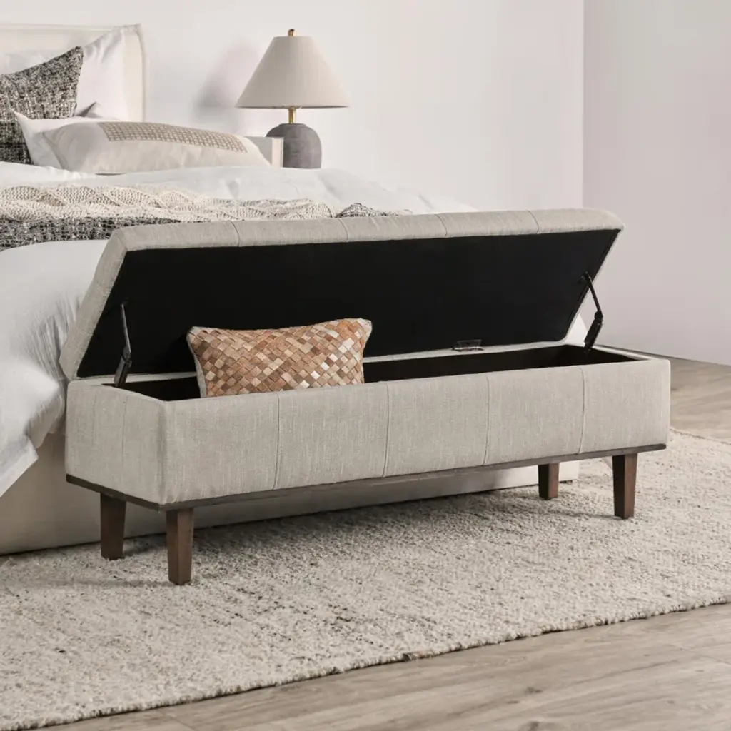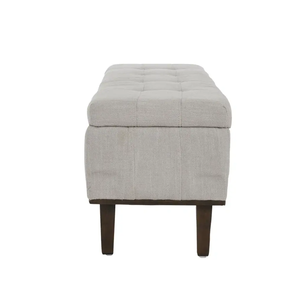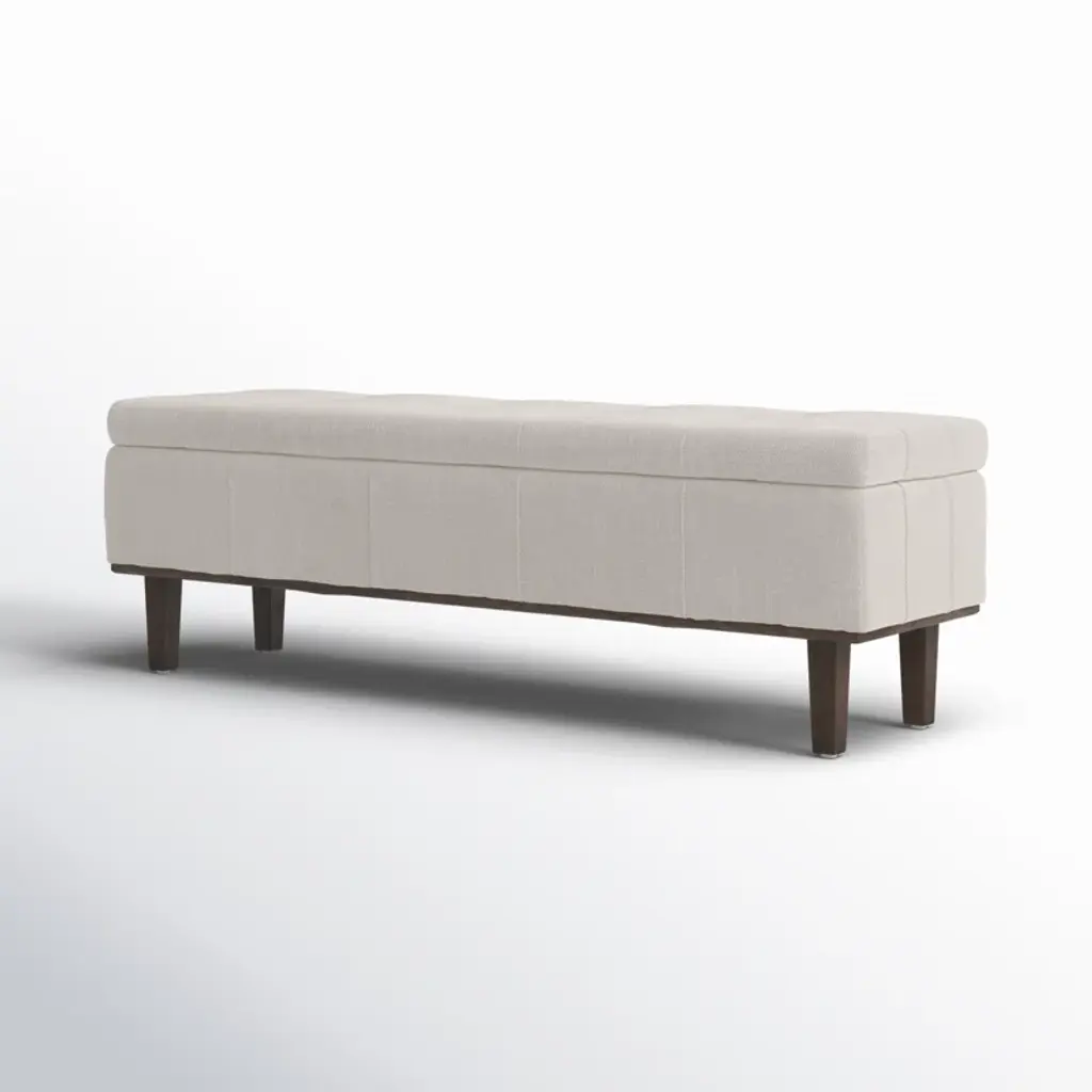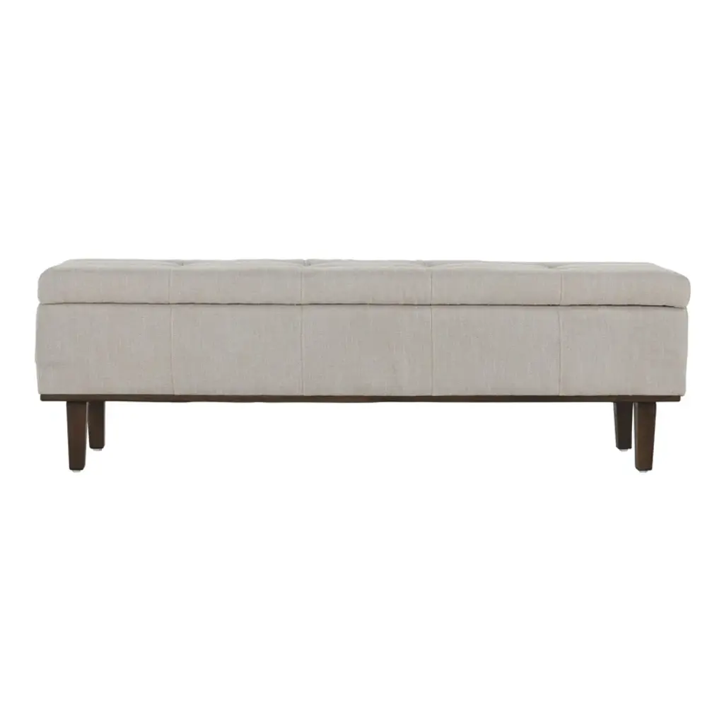 Elegantly appointed with tufted upholstery and a contrasting wood frame, this bench makes a chic addition to any space. Interior storage makes this piece a versatile yet stylish solution for a bedroom, entryway, or office.