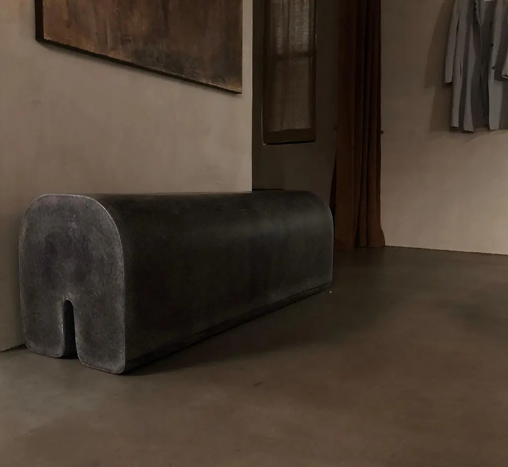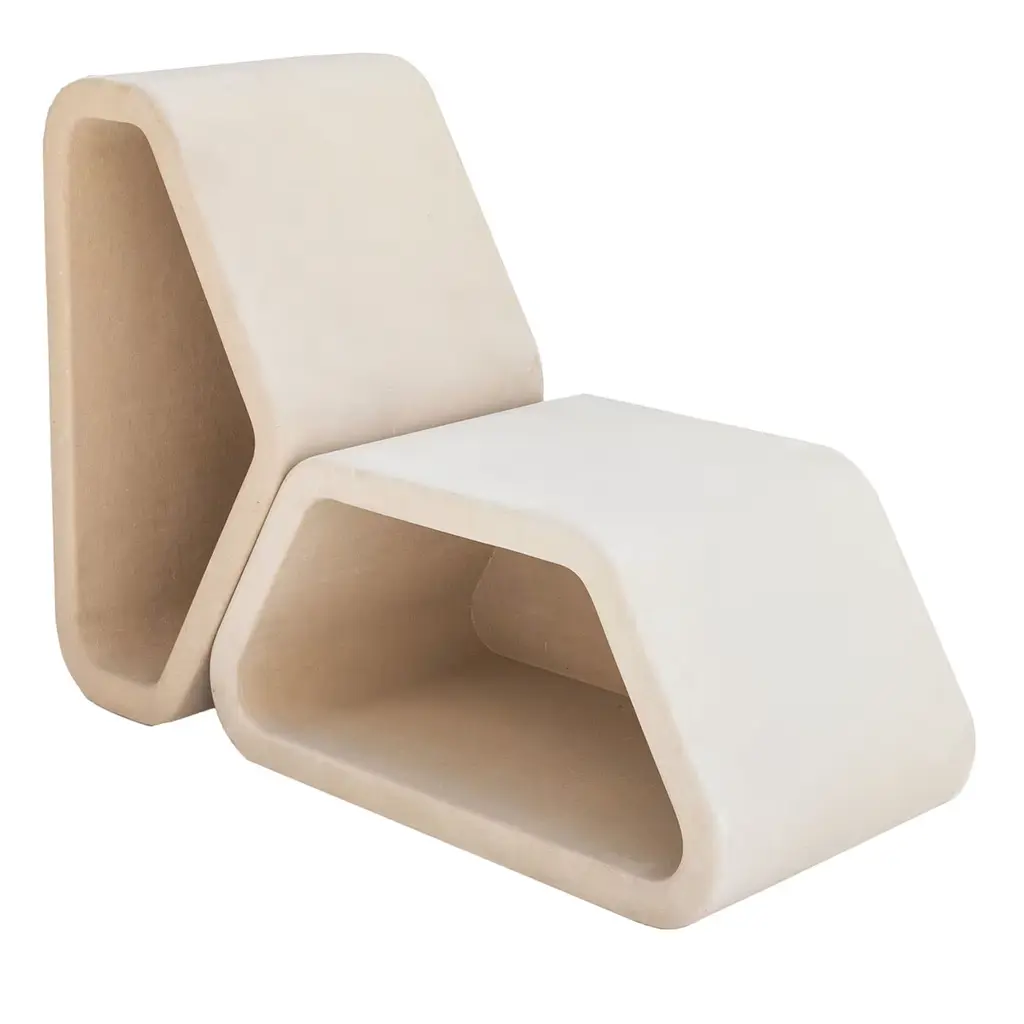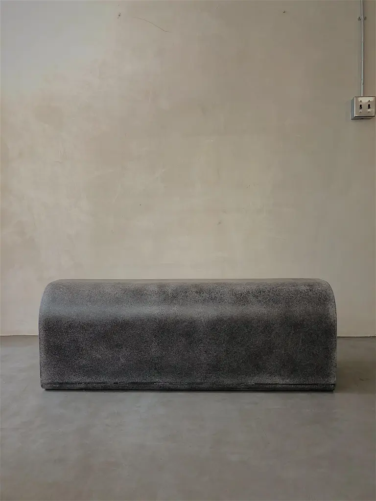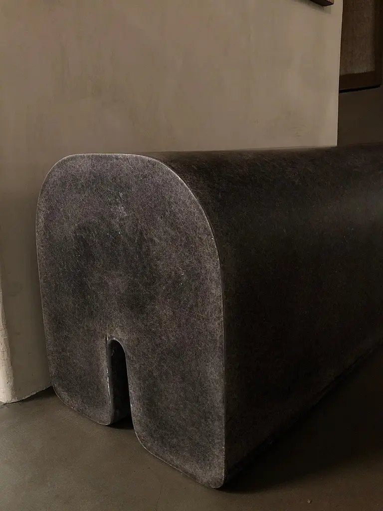 White Arch bench by Karstudio.Materials: FRP.Dimensions: 120 x 40 x 43 cm.This piece is suitable for outdoor use.Both display ways make it the focus of the space. It could be laid as a bench, and stand up as a stand for art work.Kar- is the root of Sanskrit Karma, meaning karmic repetition. We seek the cause and effect in aesthetics, inspired from the past, the present, and the future, and we create.The creation journey based on sensibility, we aim to convey emotion through the creation. From the very first kneading, the designer's current emotion, either joy or sorrow, affects the strength and trace on the clay. The overall edges and the lines are ornate and plainness, representing a true emotion, "not my intention".Due to the use of this organic material, the finish will have irregularities, those are not imperfections but part of the visual will of the designers and makers.