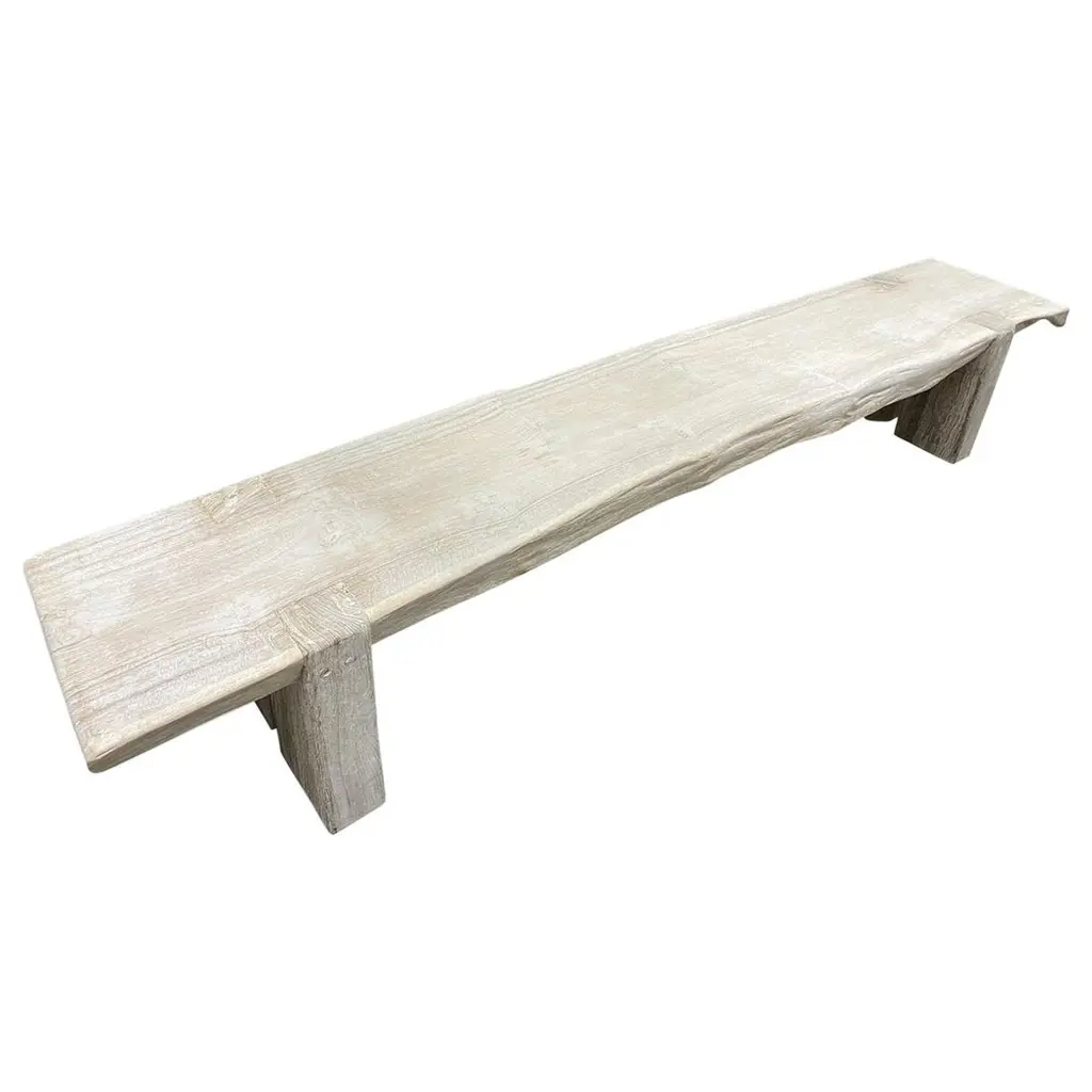 Whitewashed Teak Bench W/ Live Edges